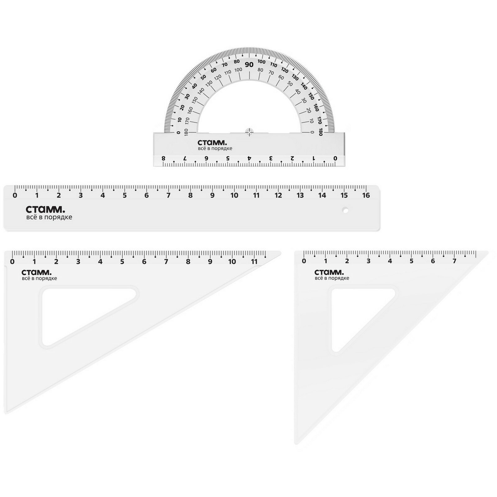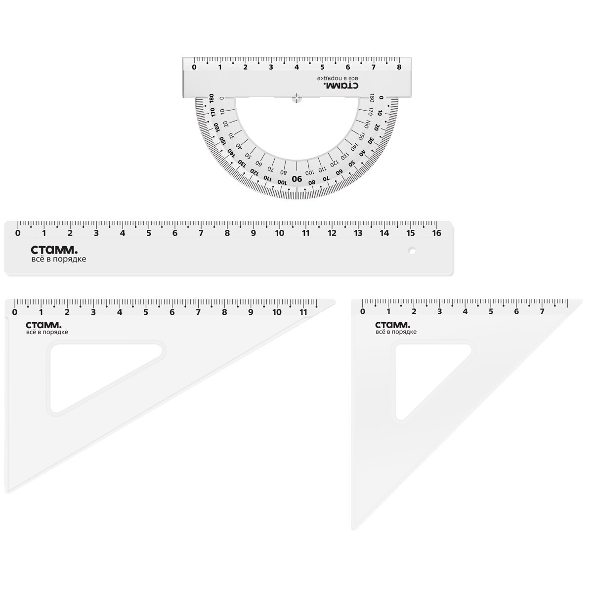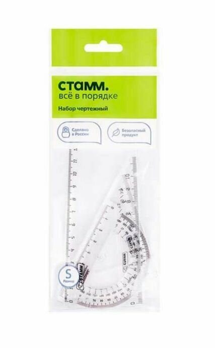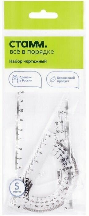 Купить Набор чертежный СТАММ, размер S (линейка 16см, 2 треугольника, транспортир), прозрачный, бесцветный, европодвес