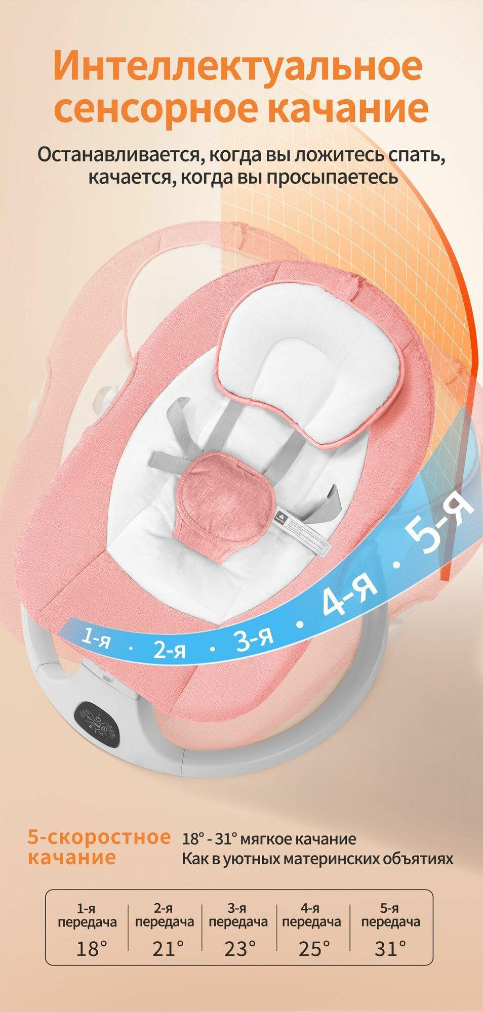 Электрокачели для новорожденного,DEAREST S0008 MAX,Кресло-качалка,шезлонг для новорожденных от 0, с игрушками Bluetooth,розовый интересное: