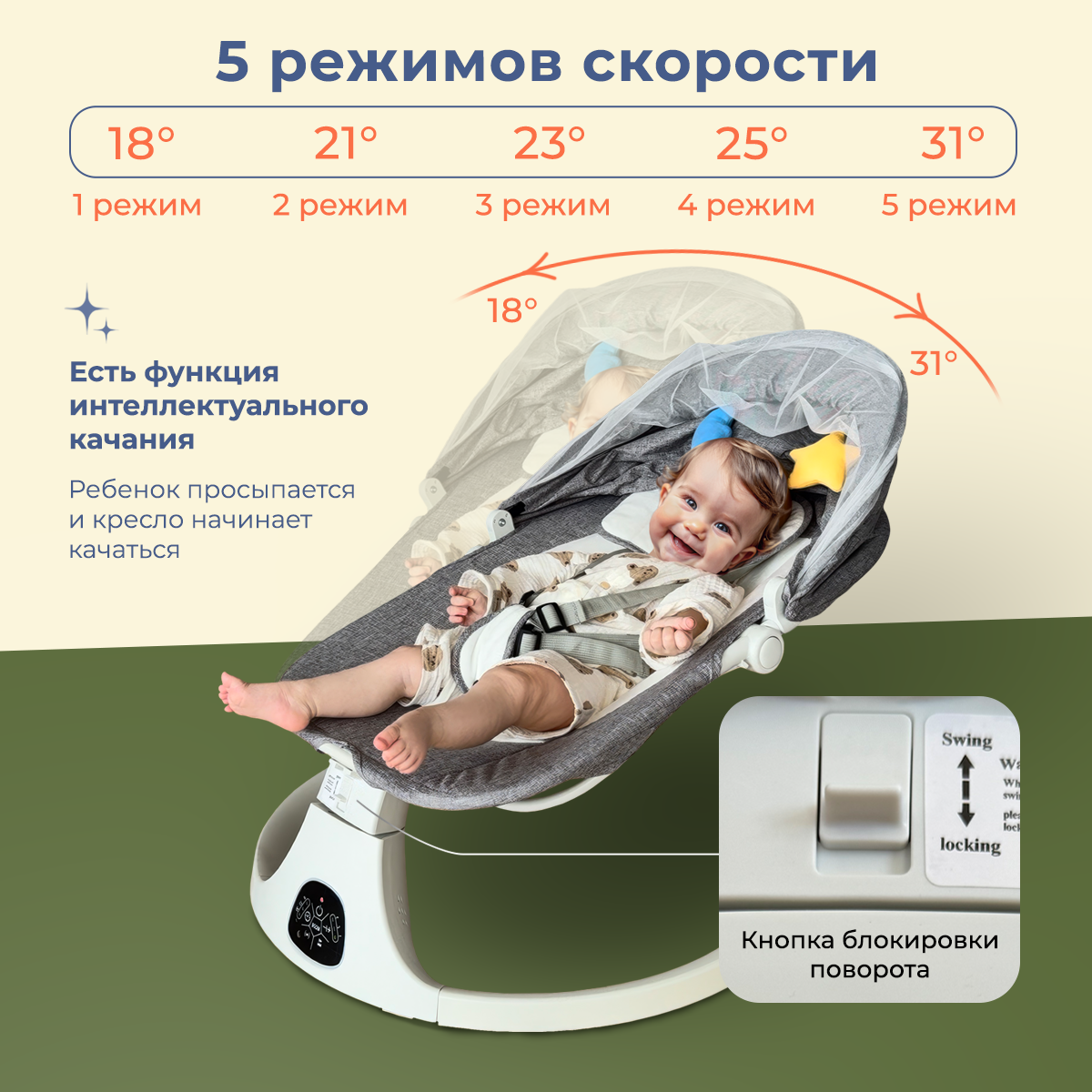 Электрокачели, шезлонг 3 в 1 для новорожденных интересное: