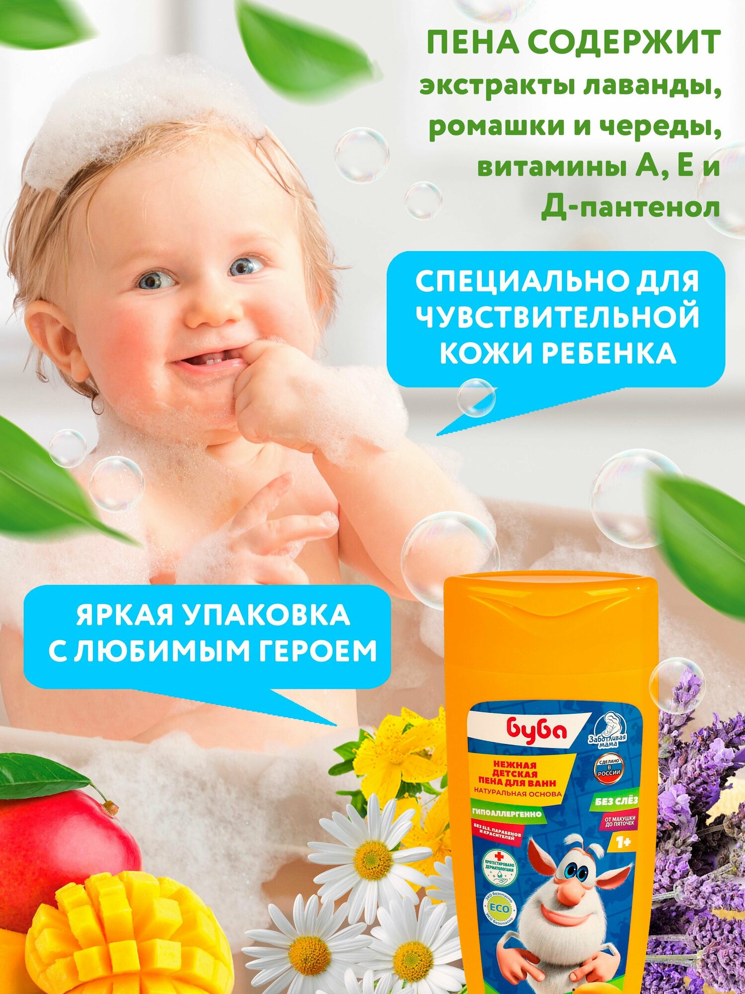 Набор Заботливая Мама Детский шампунь и Детская пена для ванн "Буба" интересное: