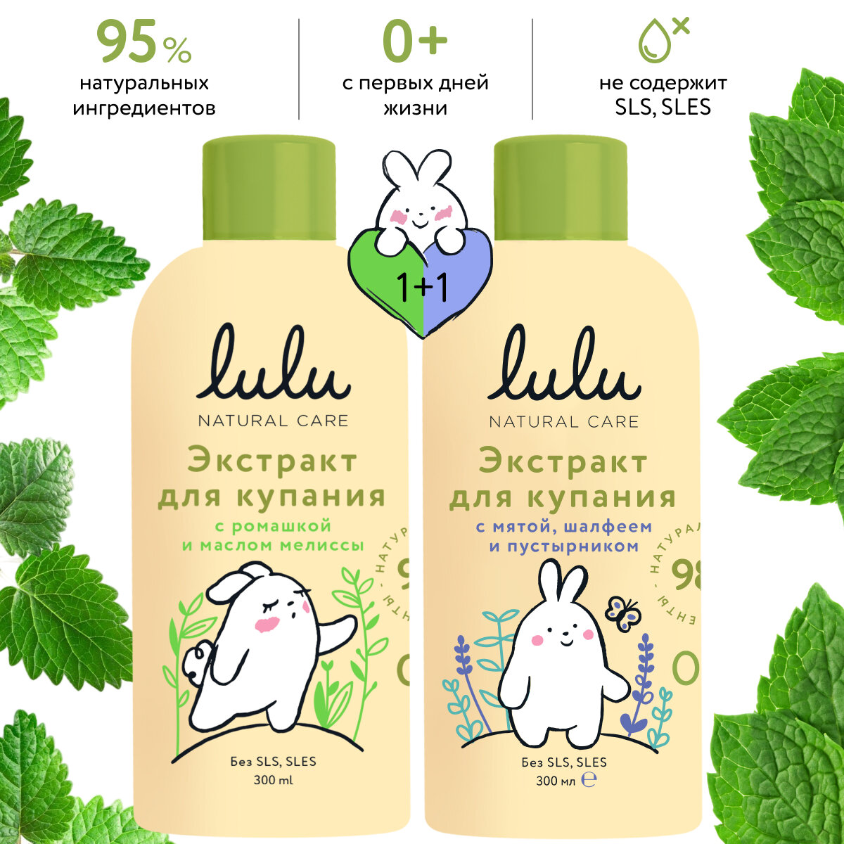 Набор экстракты для купания LULU детский, 0+. Экстракт С ромашкой и маслом мелиссы 300 мл + С маслами мяты и шалфея 300 мл. Травы для ванны интересное: