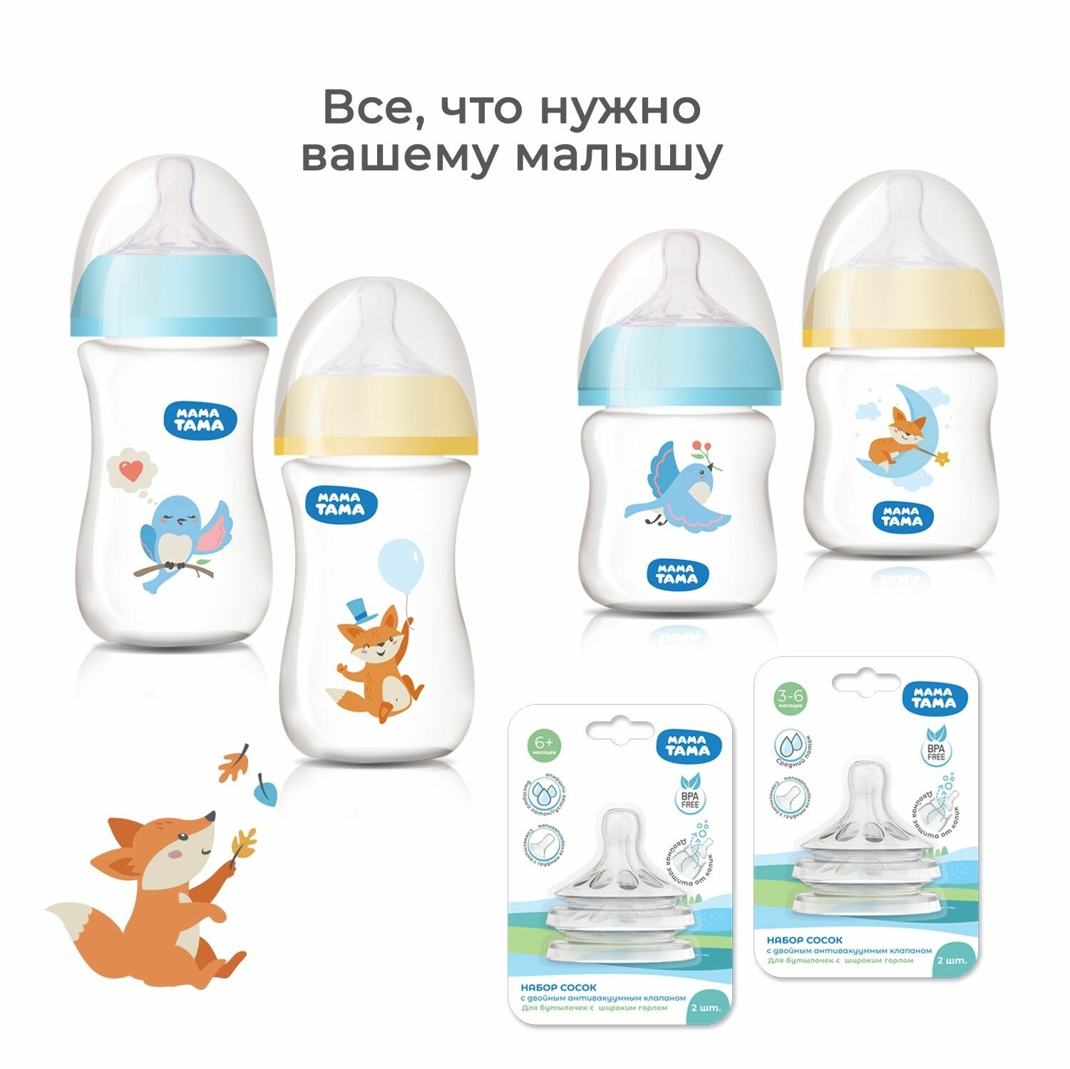 | Комплектация | Бутылочка для кормления МАМА ТАМА полипропиленовая с широким горлышком с силиконовой соской |