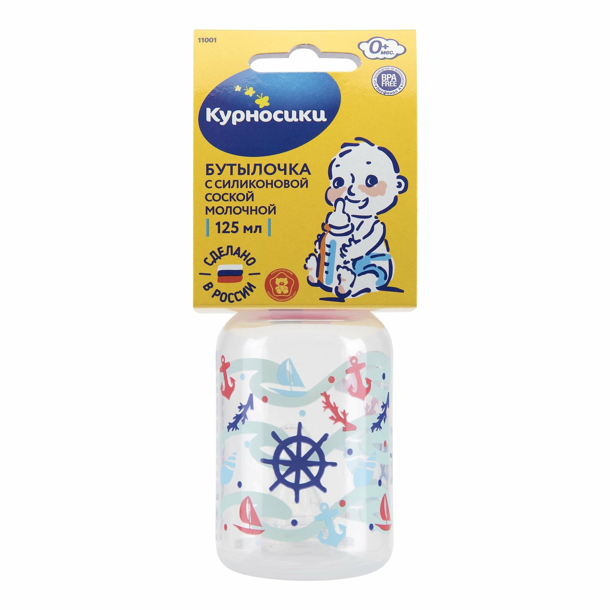 Бутылочка Курносики 125 мл, полипропиленовая, с крышкой и силиконовой соской, от 0 мес (11001)