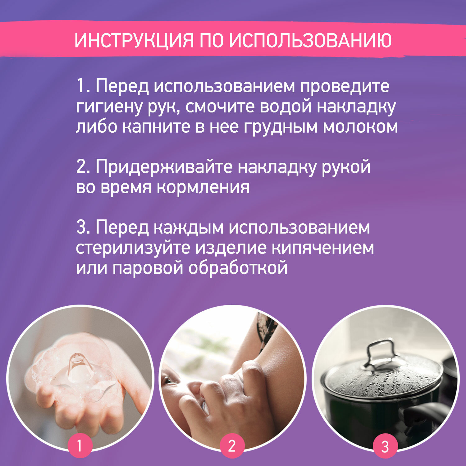 Накладки на грудь для кормления малышей силиконовые многоразовые, набор 2 шт, размер L