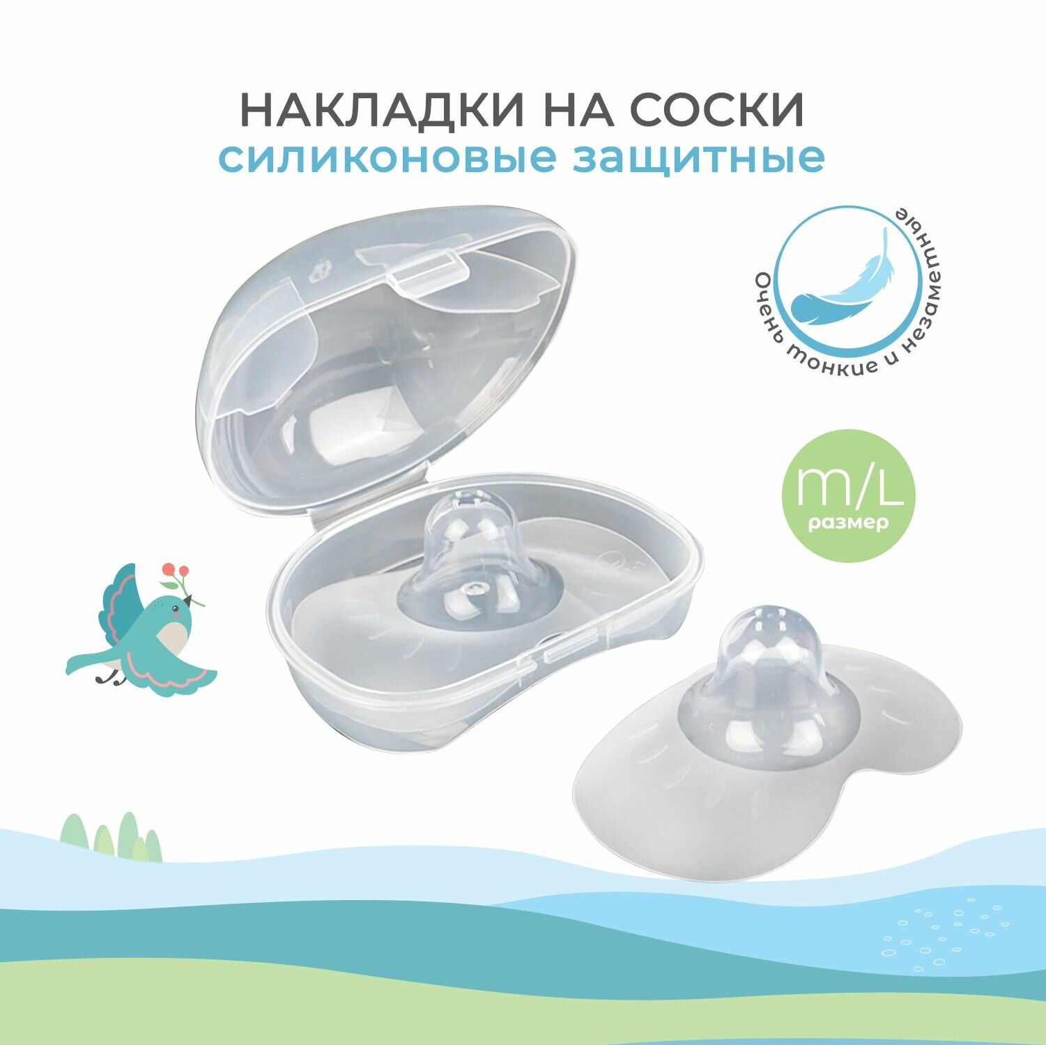 Накладки на грудь для кормления малышей силиконовые многоразовые, набор 2 шт, размер L