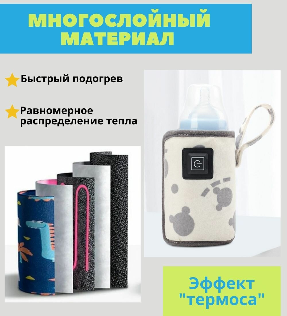 Нагреватель бутылочек для детского питания / 3 режима с USB зарядкой / термос- чехол яркий, 1ш