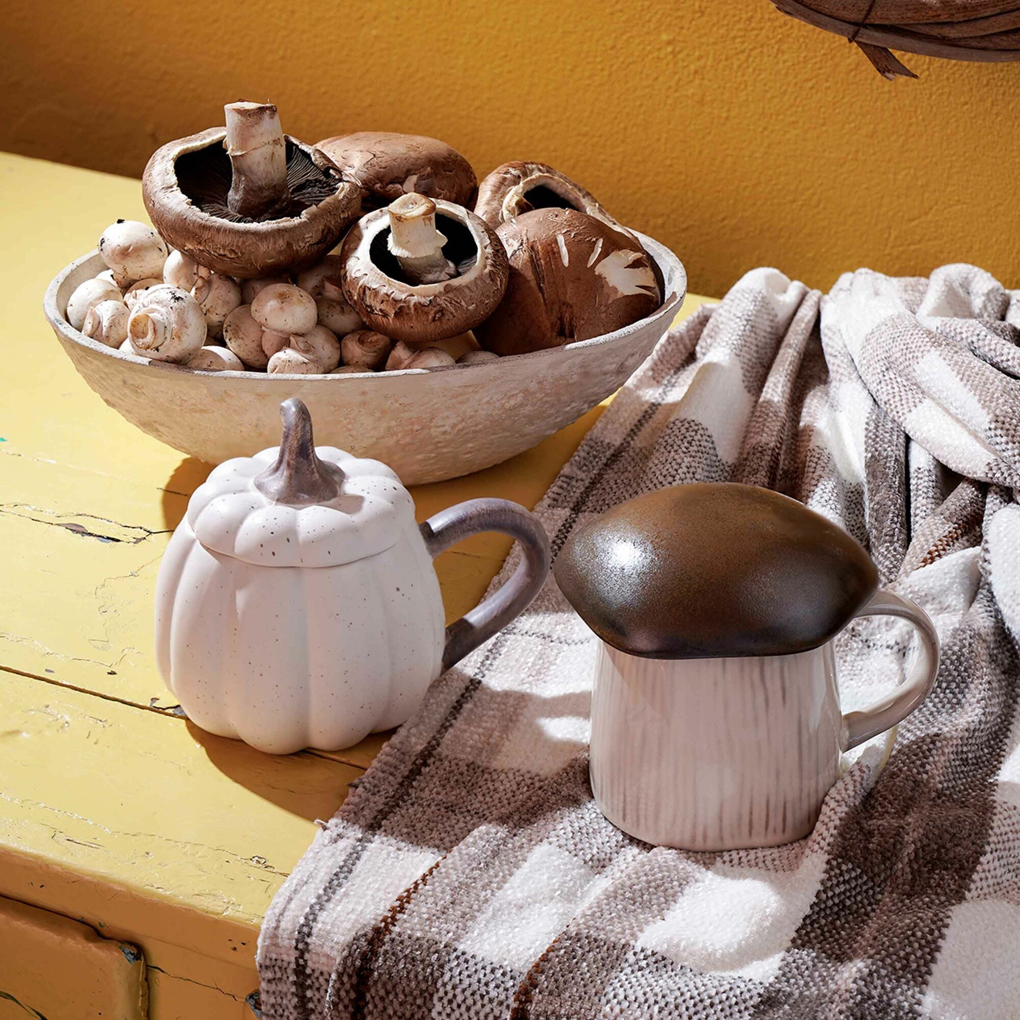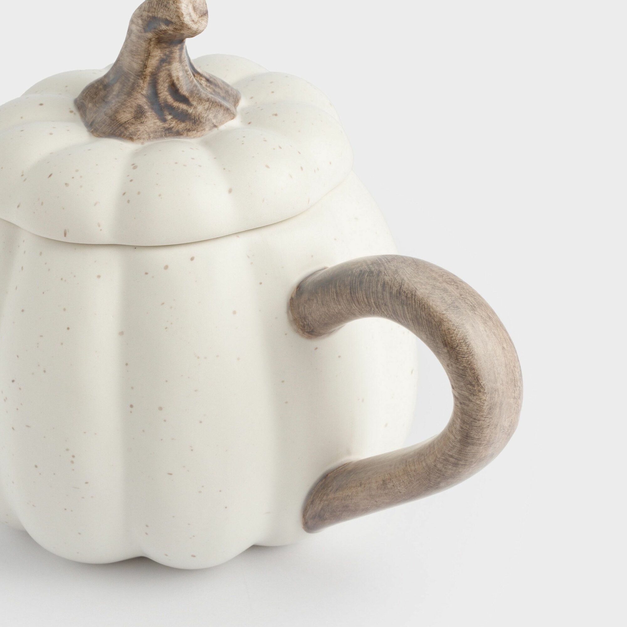 Кружка, 550 мл, с крышкой, керамика, молочная, в крапинку, Тыква, Slight frost интересное: