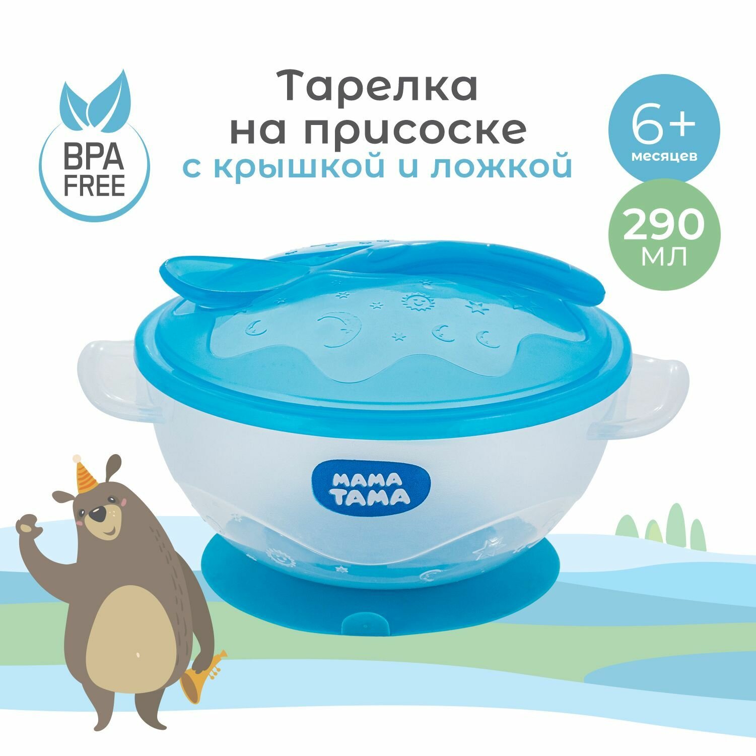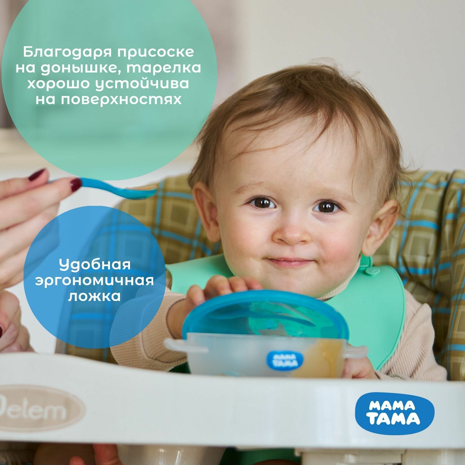 Купить Тарелка на присоске с крышкой и ложкой глубокая пластиковая мама тама 6+