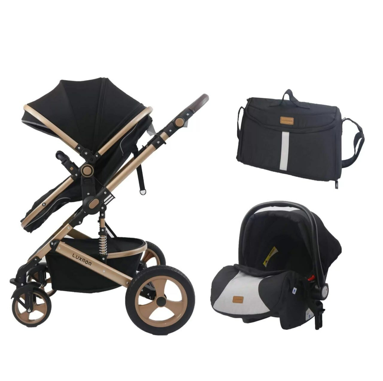 Купить Коляска-универсальная детская Luxmom 518 3в1 с Автокреслом с рождения и до 3х лет , чёрная