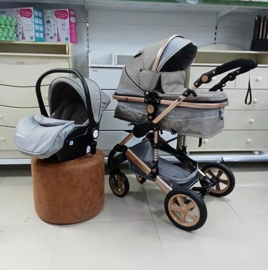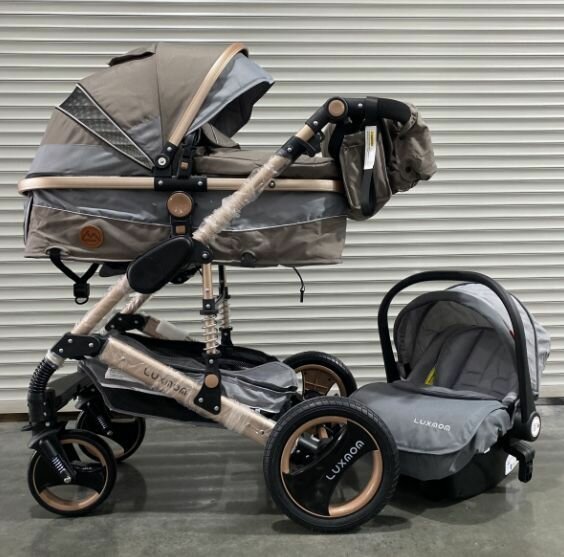 Детская коляска-трансформер 3 в 1 Luxmom 510, c автолюлькой / коричневый цвет интересное: