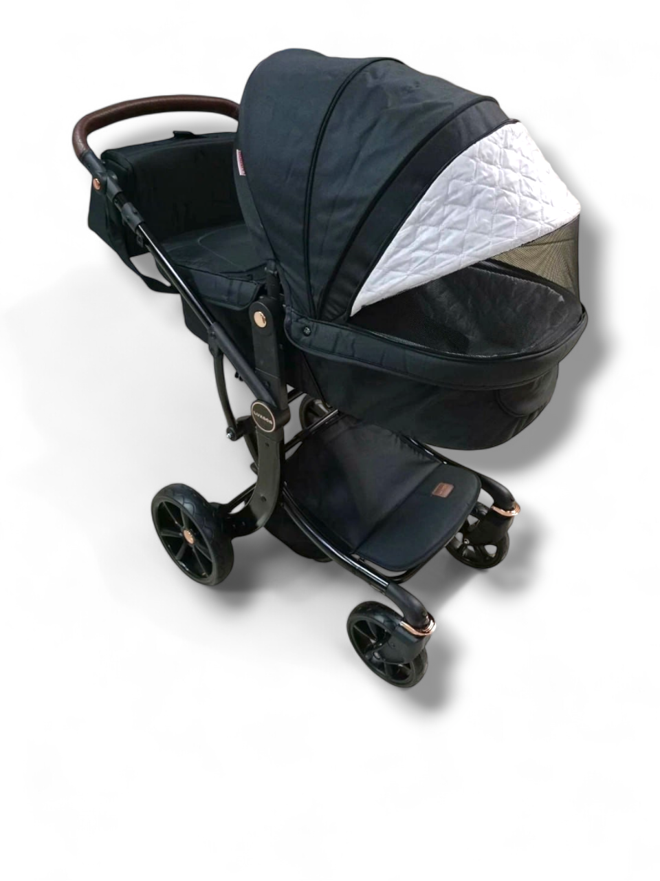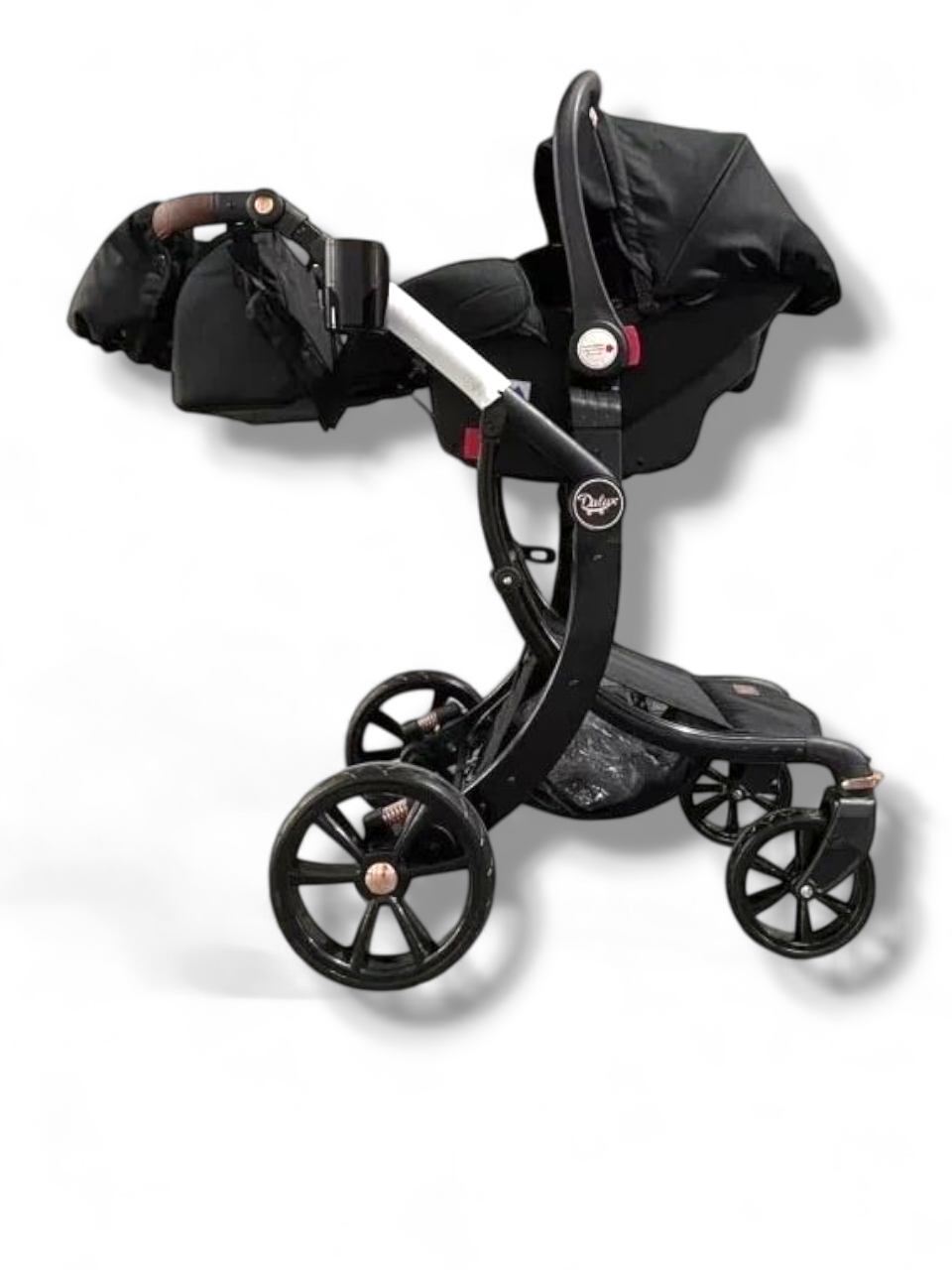 Купить Коляска детская Luxmom 608 3в1 с рождения и до 3х лет Экокожа, черная