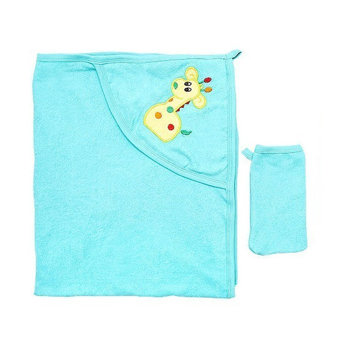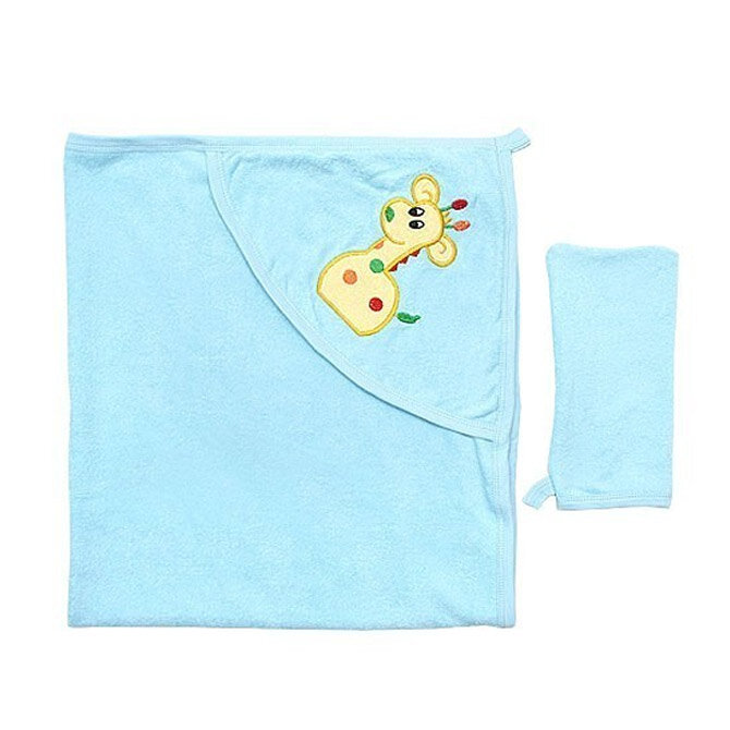 Универсальная махровая пеленка с рукавичкой для купания малыша (32119-2013) р-р: 100*85 голубая А интересное: