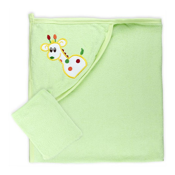 Универсальная махровая пеленка с рукавичкой для купания малыша (32119-2013) р-р: 100*85 салатовая А