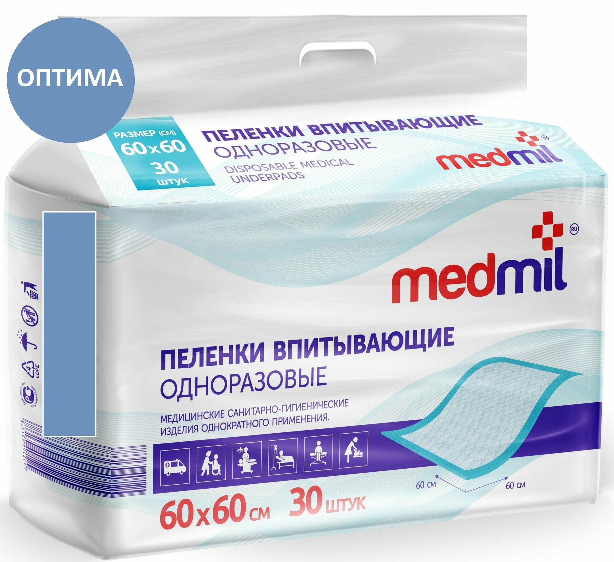Купить Пеленки впитывающие одноразовые медицинские MEDMIL 60 x 60 cм (Оптима), 30 шт.