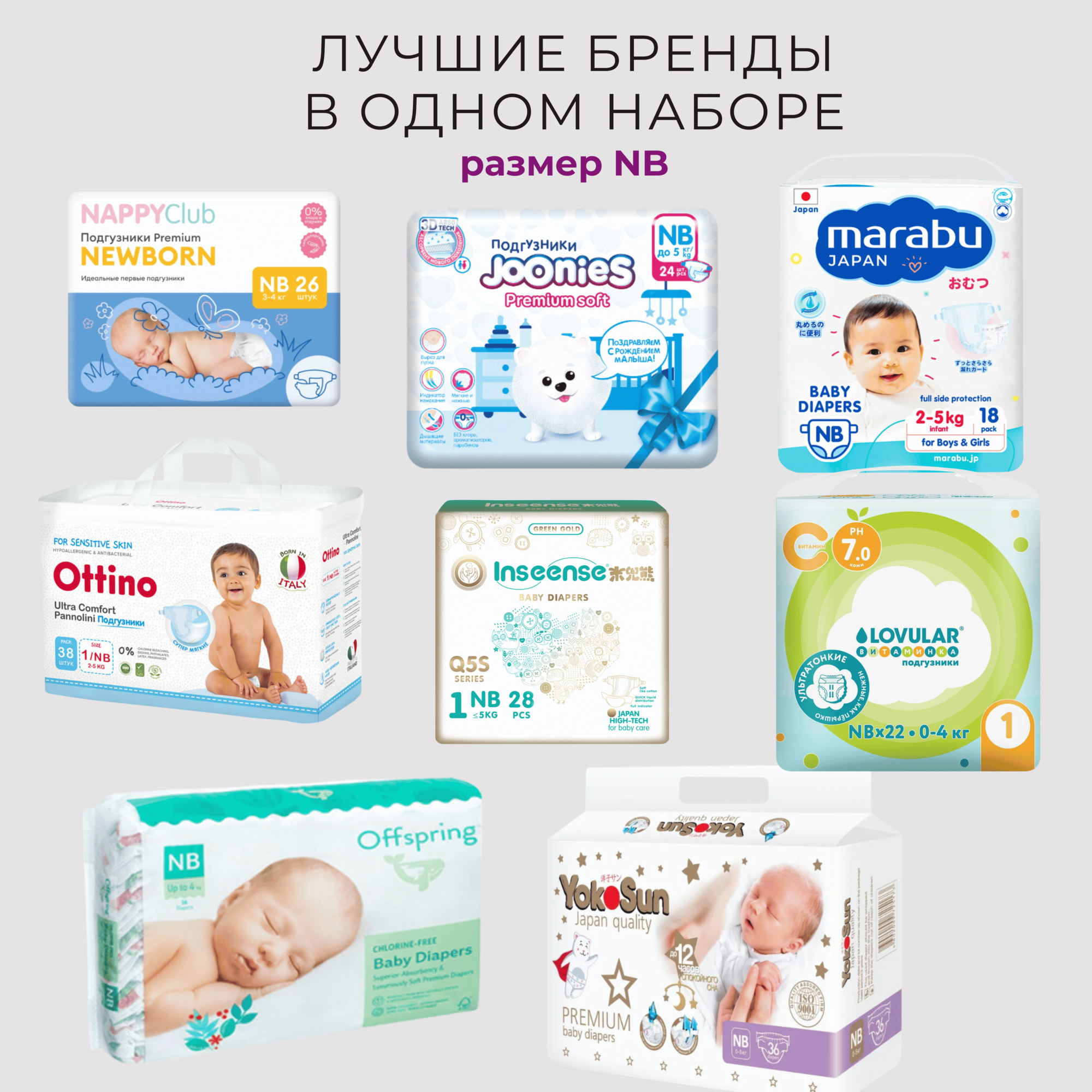 Набор пробников подгузников для новорожденных , 8 брендов по 3 шт
