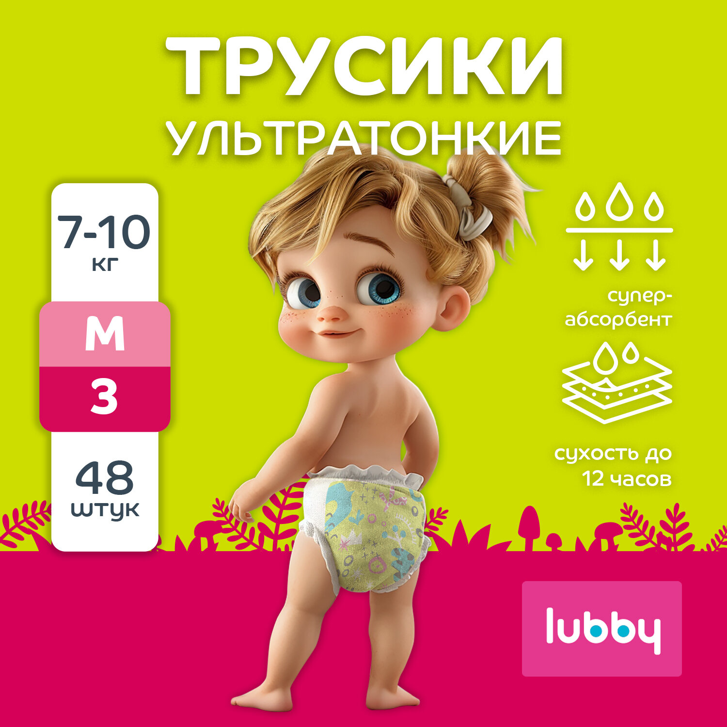 Подгузники трусики lubby ультратонкие LIGHT, размер 3 (M), 7-10 кг, 48 шт интересное: