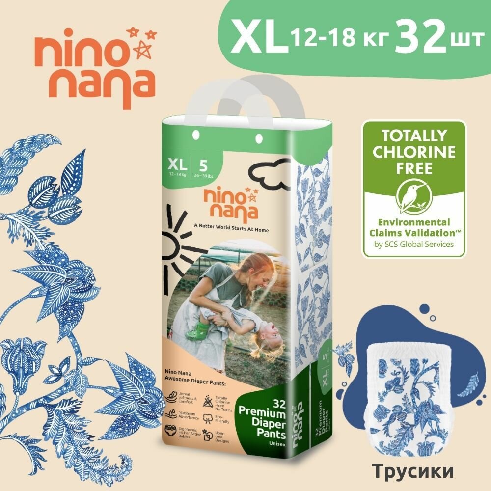 Подгузники-трусики детские Nino Nana XL (12-18 кг), 5 размер. 32 штуки, расцветка Бали (Q-форма)