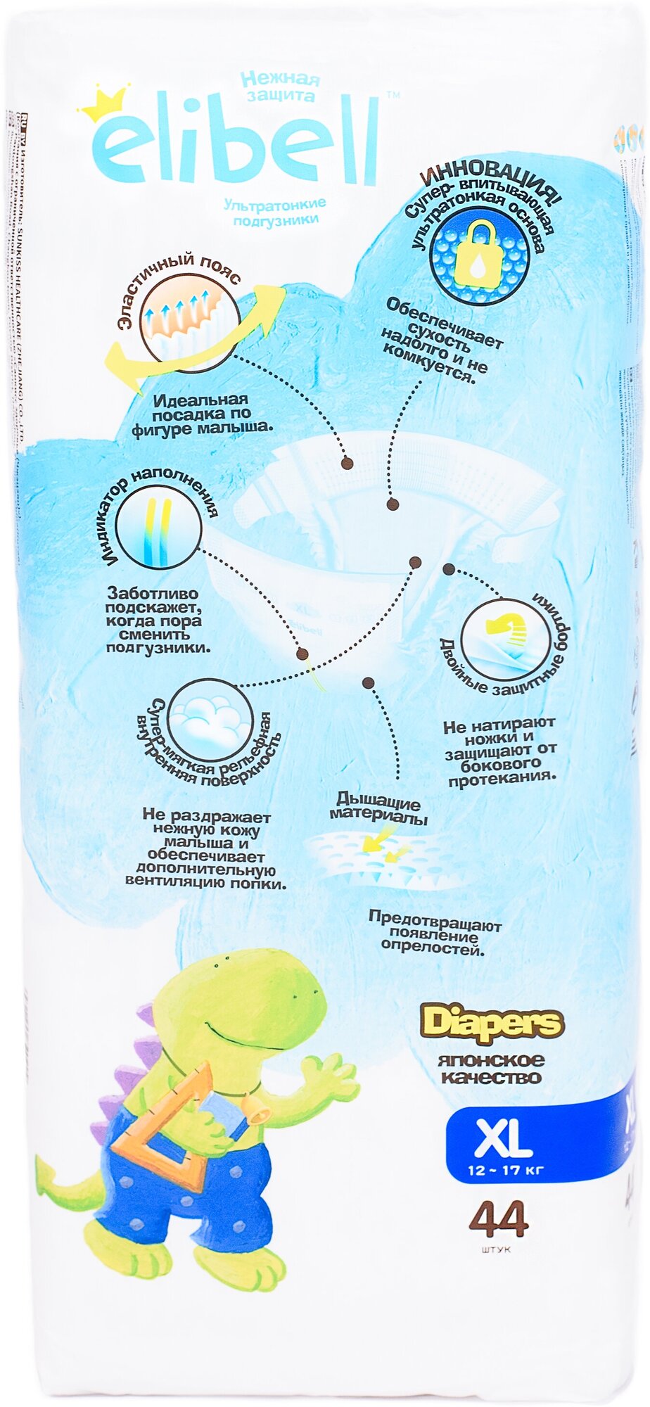 Памперсы ELIBELL XL (12-17 кг), 44 шт. интересное: