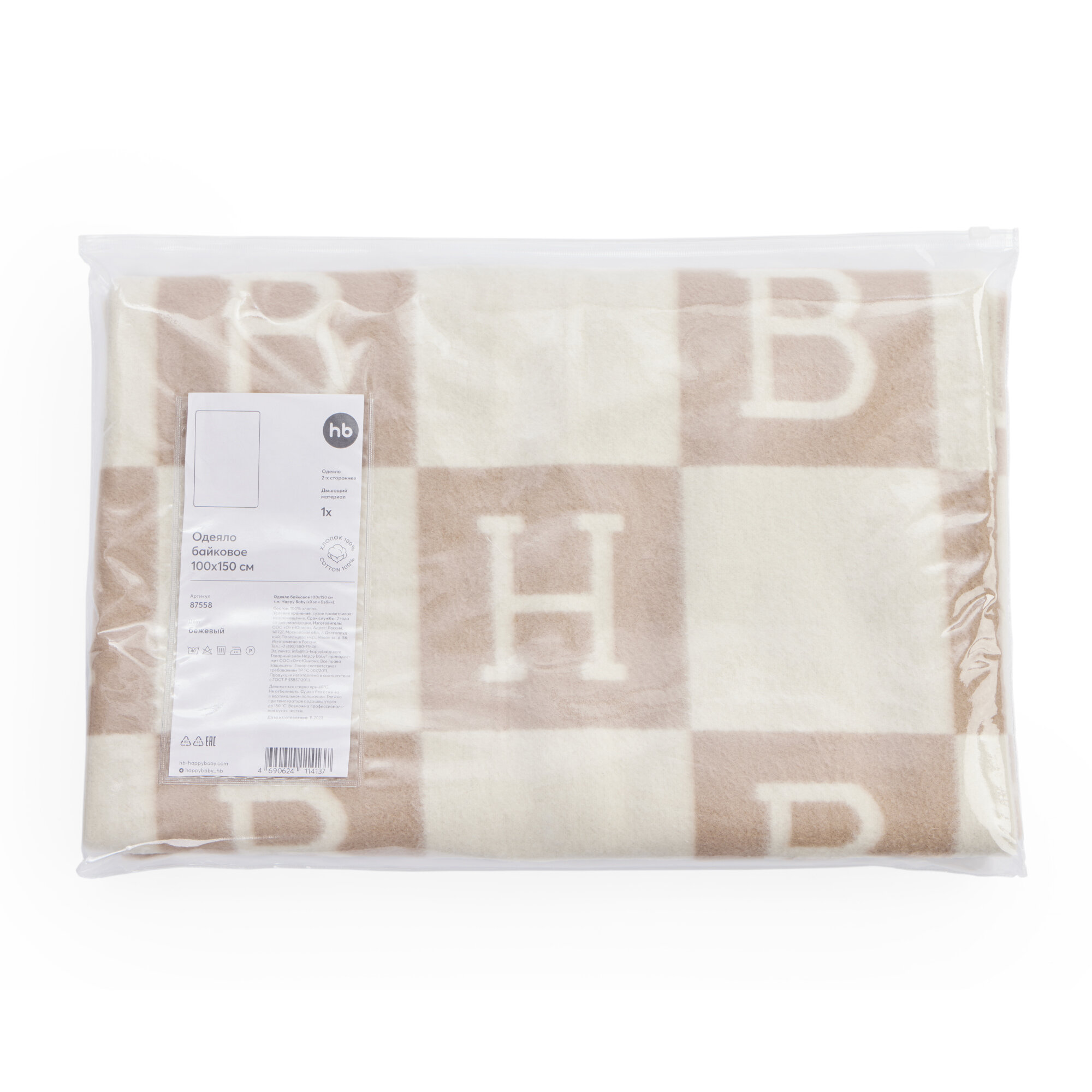Сохранить87558, Одеяло детское байковое 100х150 см Happy Baby, хлопковое, легкое, одеяло для новорожденного, плед одеяло односпальное, бежевое интересное: