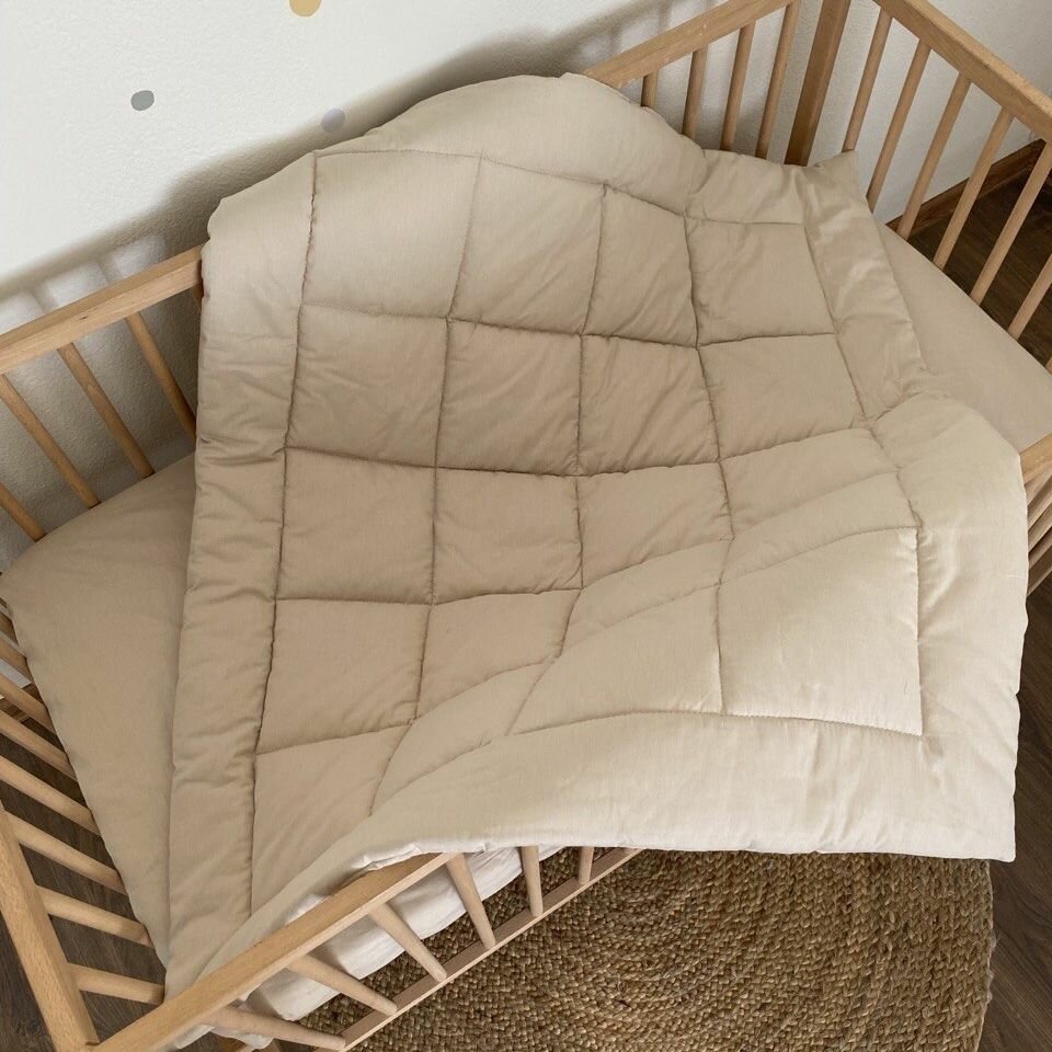 Одеяло стеганое в кроватку для новорожденного MamiBro, размер 90х110 см, 100% хлопок, светло бежевый