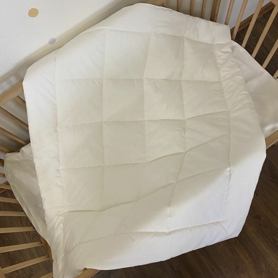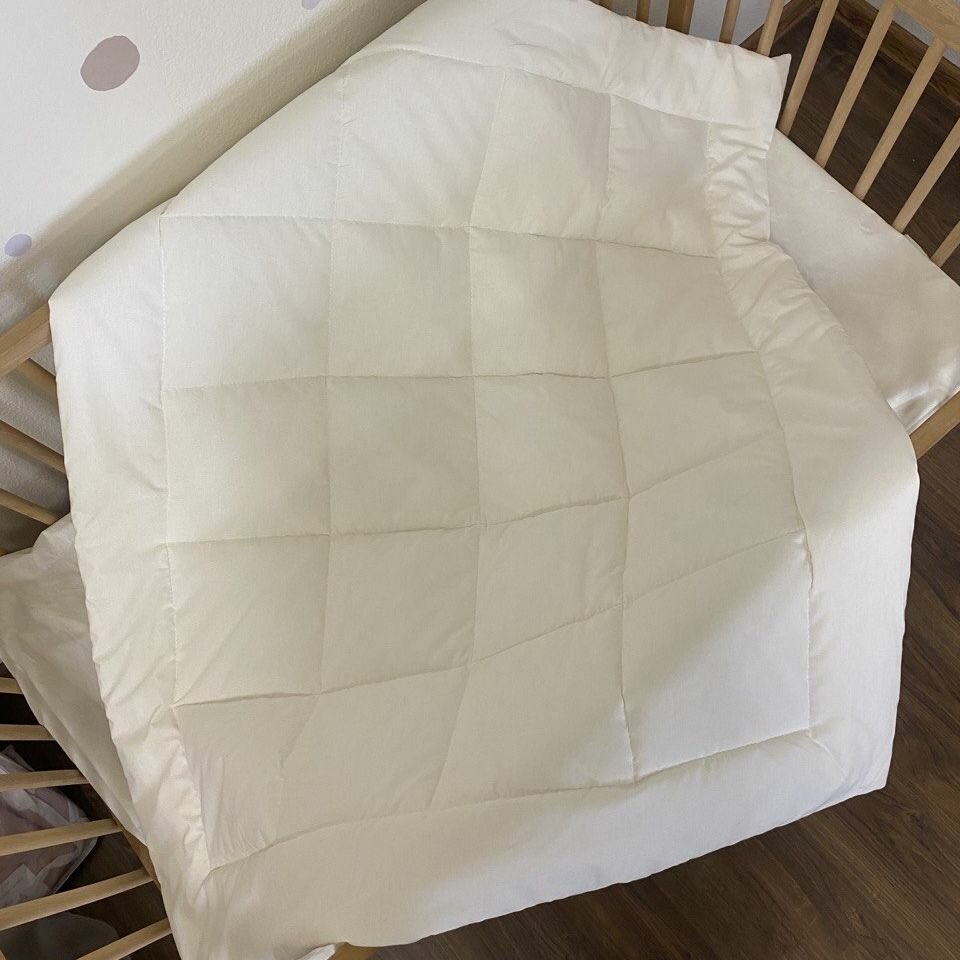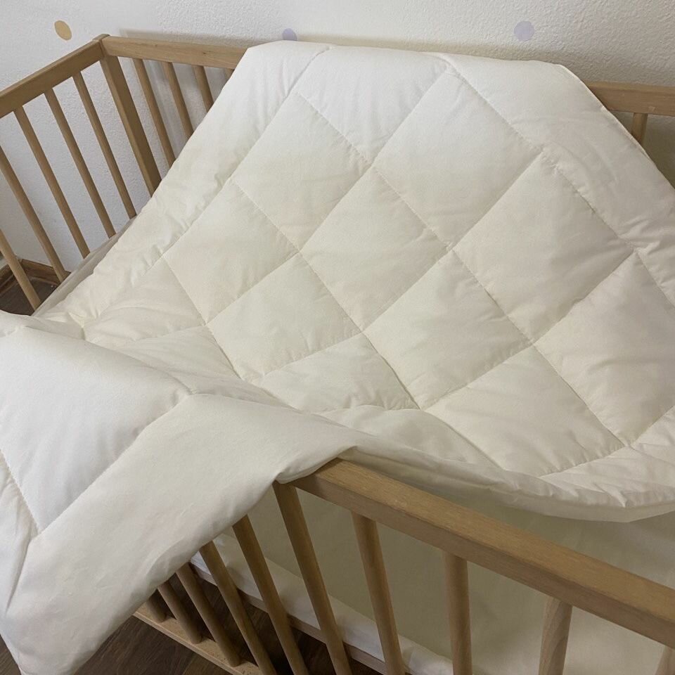 СохранитьОдеяло стеганое в кроватку для новорожденного MamiBro, размер 90х110 см, 100% хлопок, молочный интересное: