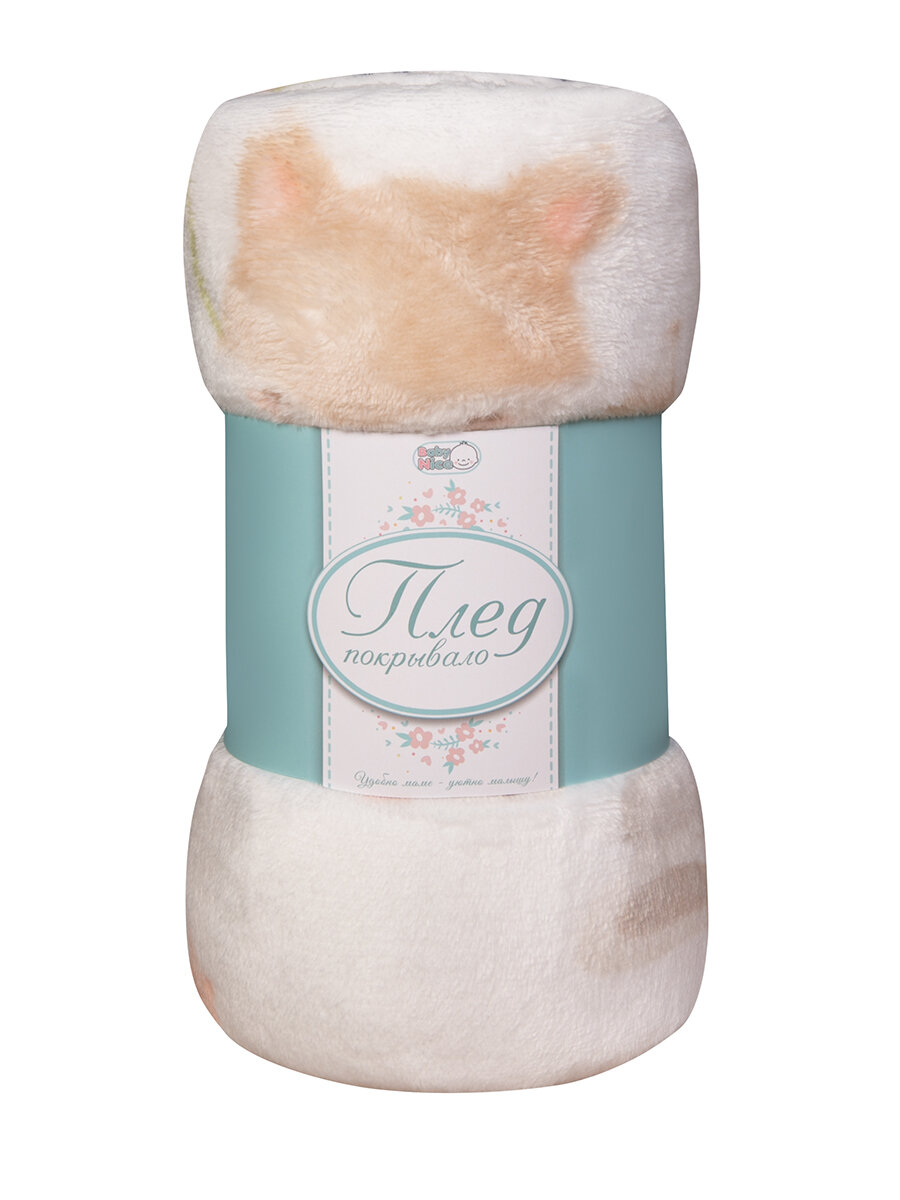 Плед для новорожденного 100х118 пушистый детский, в кроватку коляску, Tessolo Home, "Игрушки", бежевый