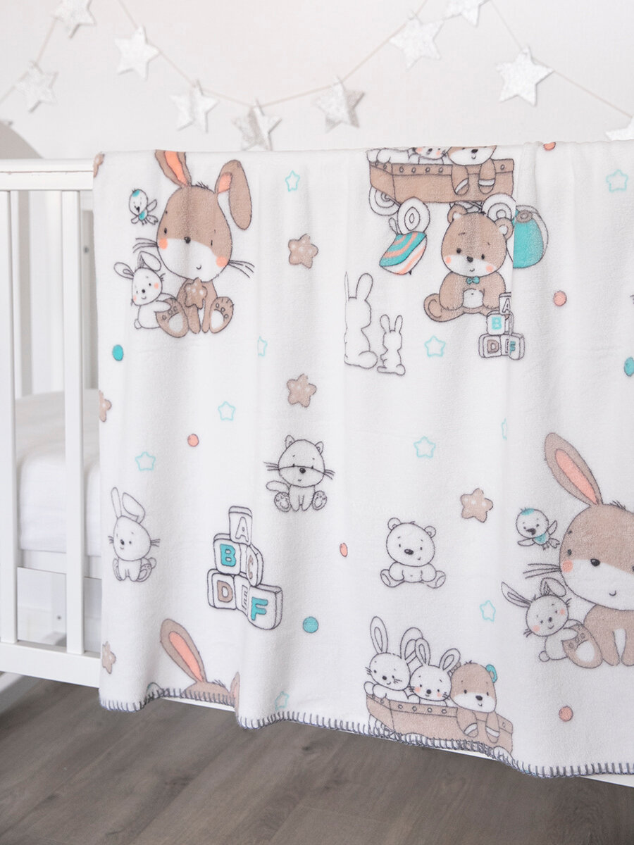 Плед для новорожденного 100х118 пушистый детский, в кроватку коляску, Лесные зверьки