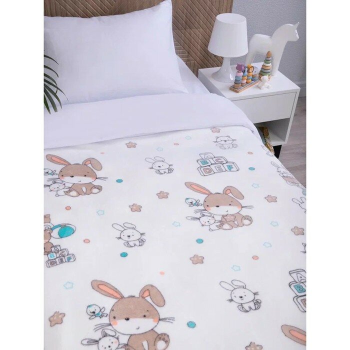 СохранитьПлед для новорожденного 100х118 пушистый детский, в кроватку коляску, "Игрушки", бежевый интересное: