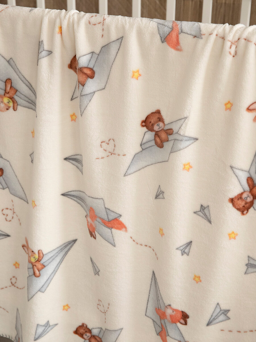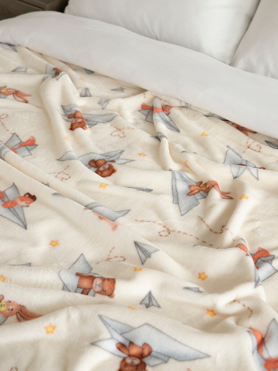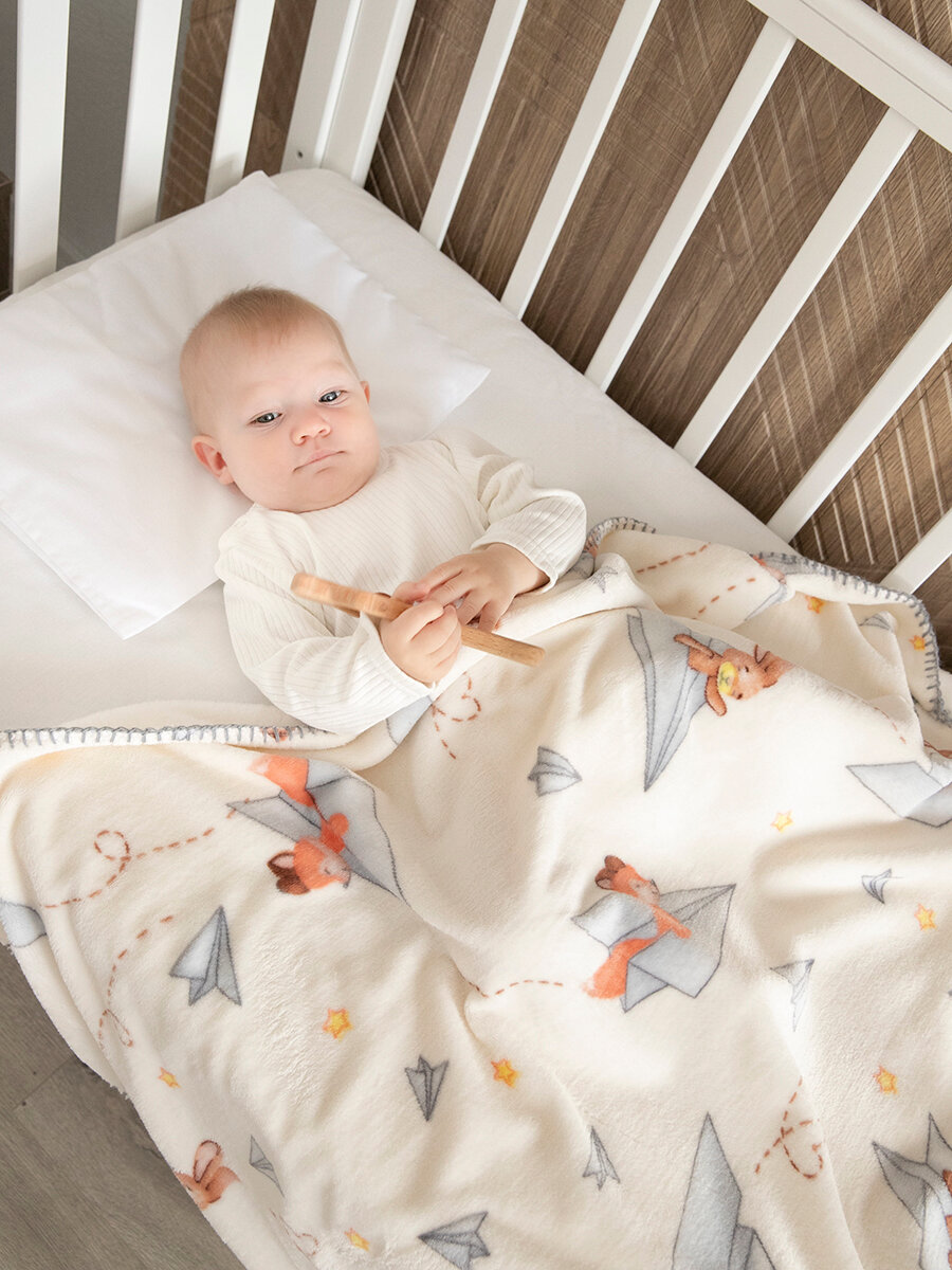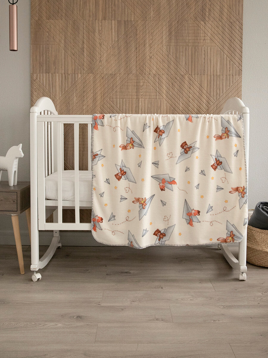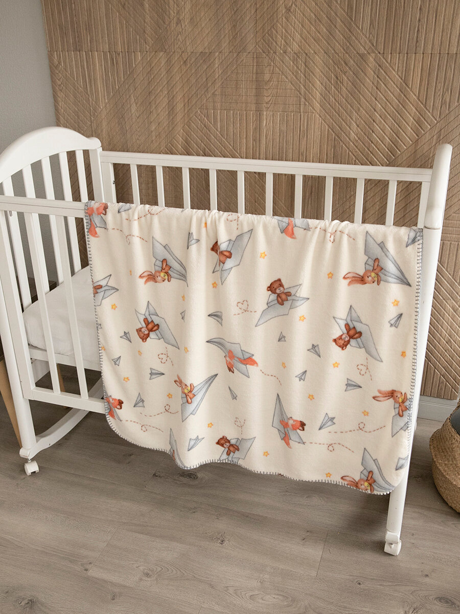 СохранитьПлед для новорожденного 100х118 пушистый детский в кроватку коляску, "Самолётики" бежевый интересное: