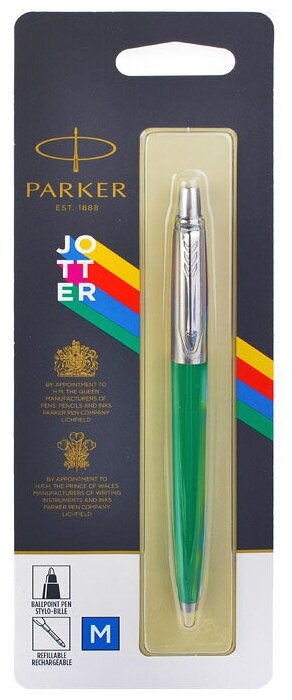 Купить Ручка шариковая Parker Jotter Color М, корпус зелёный, синие чернила, блистер (2076058) Parker 45799 .