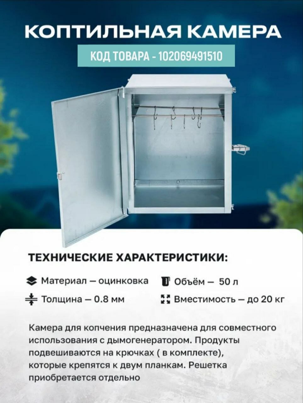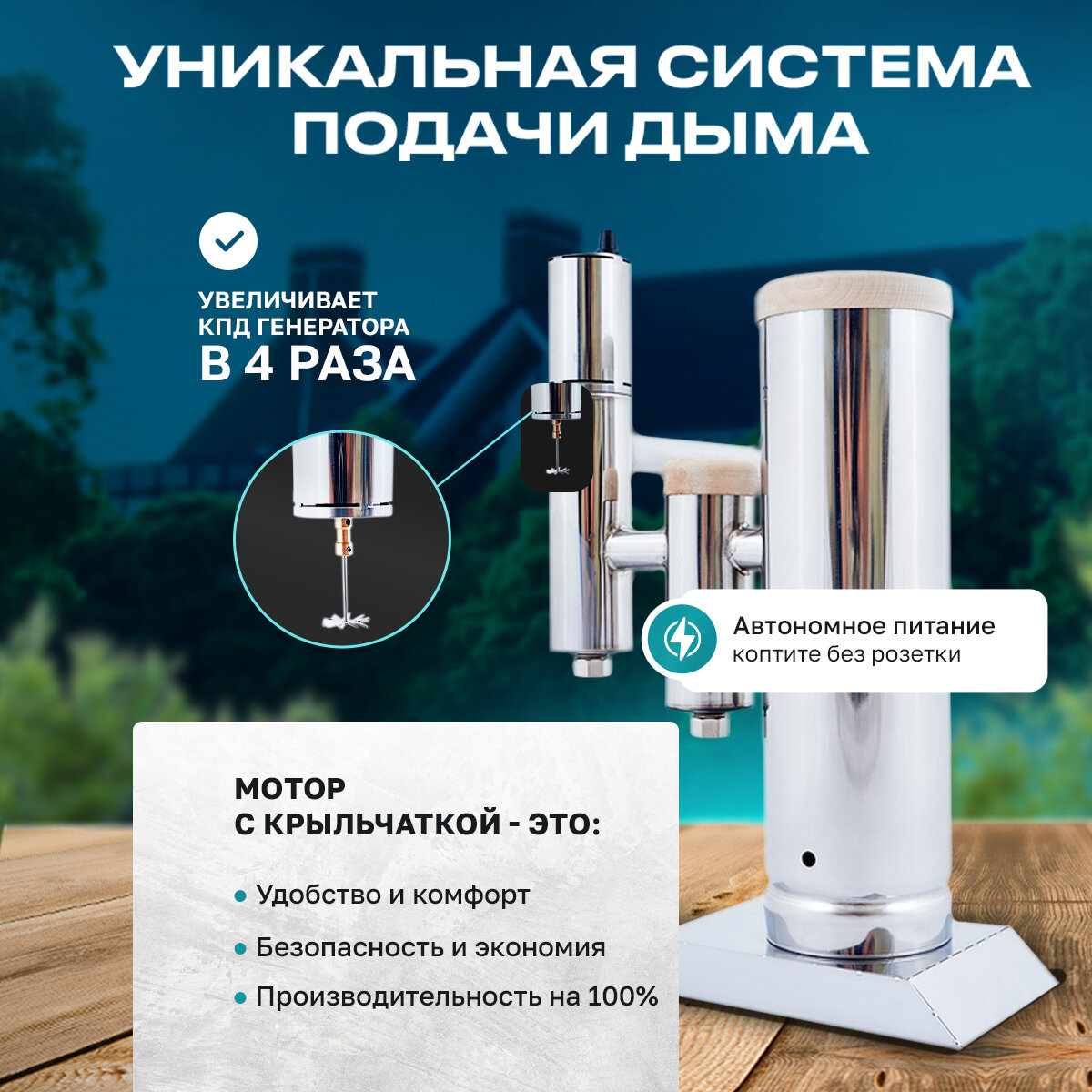 | Тип топлива | копчение на щепе |