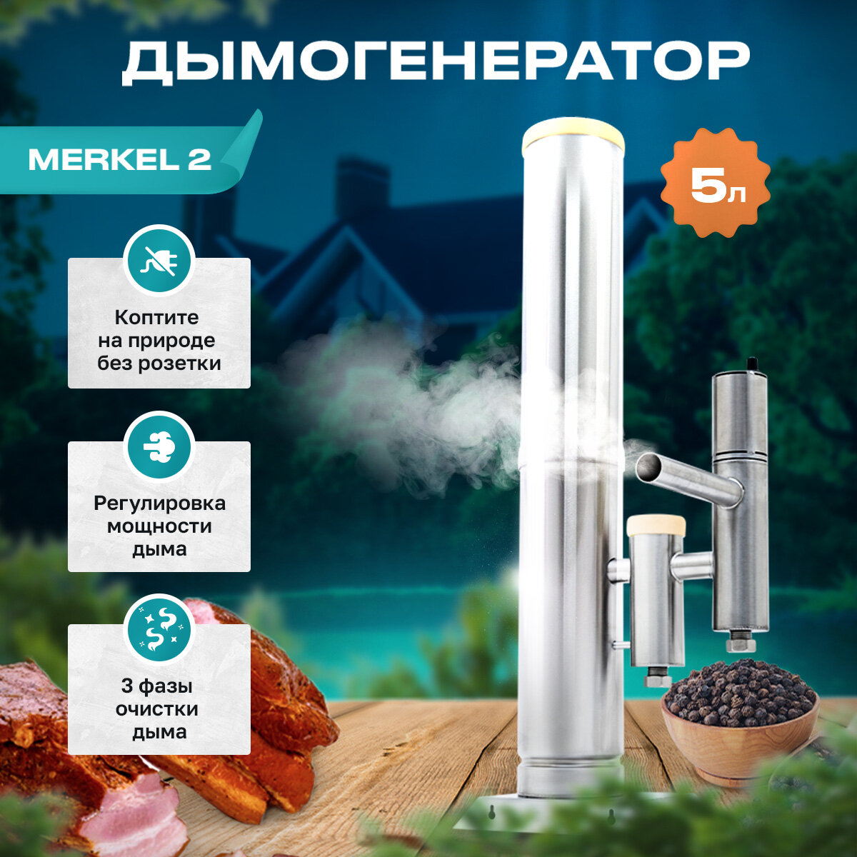 Дымогенератор MERKEL 2 для холодного копчения, корпус 5 литров / домашняя коптильня интересное: