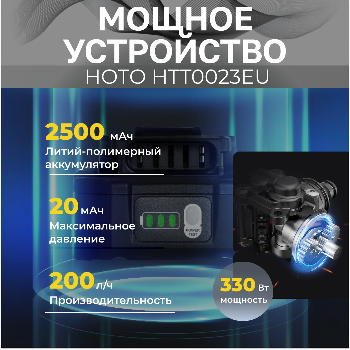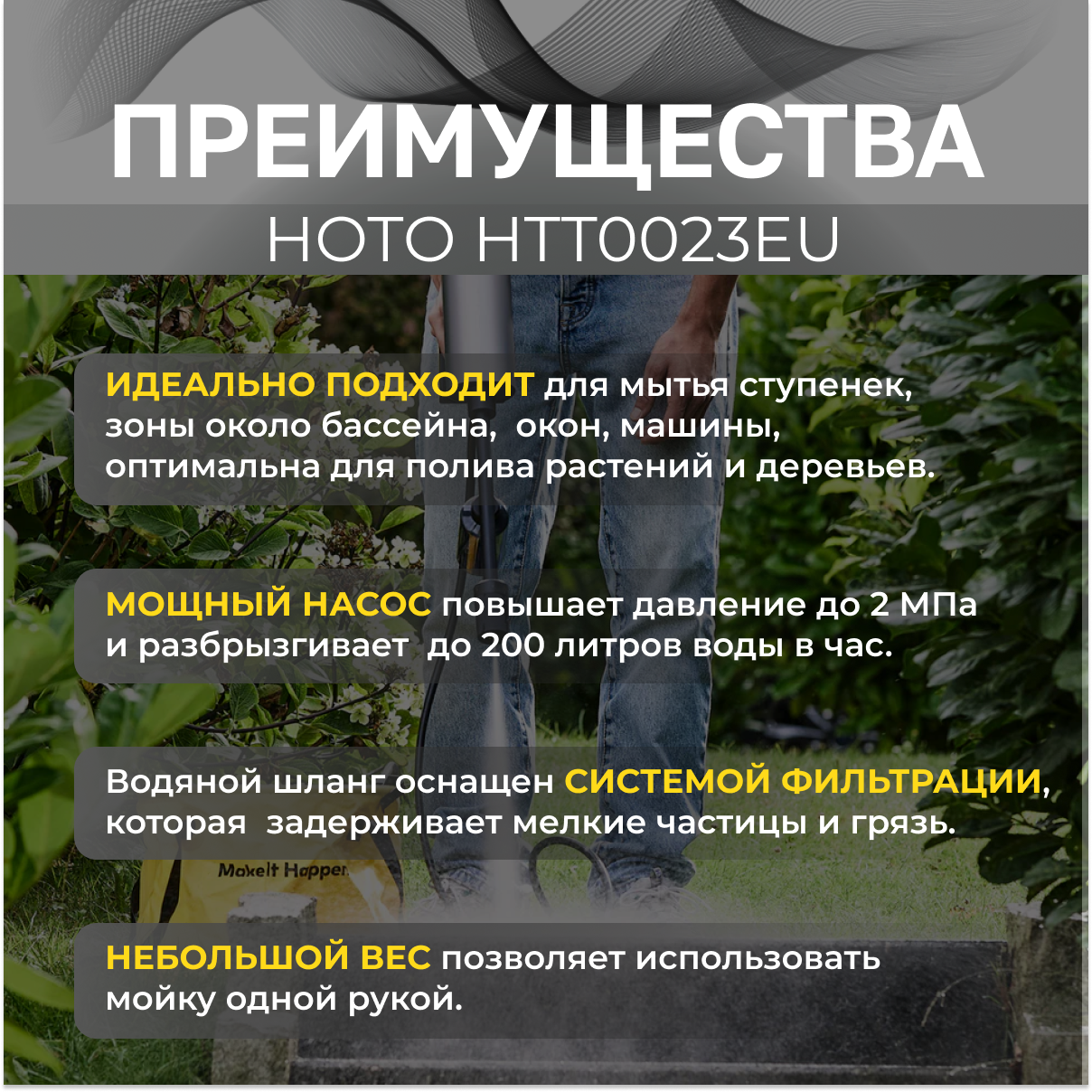 Портативная аккумуляторная мойка высокого давления HOTO 20V Pressure Washer Pro интересное: