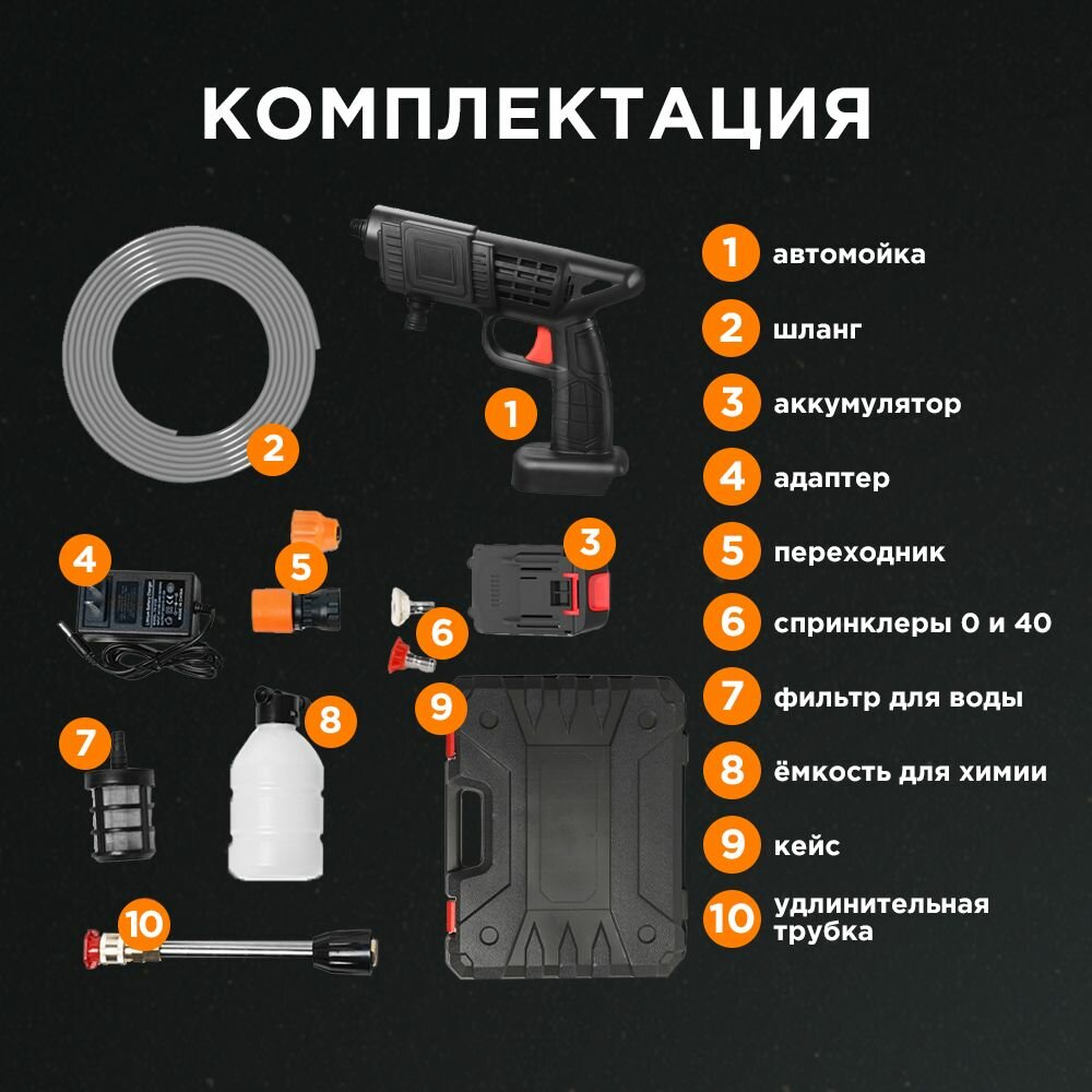 Мойка высокого давления аккумуляторная в кейсе/ портативная автомойка с мощным аккумулятором 96V интересное: