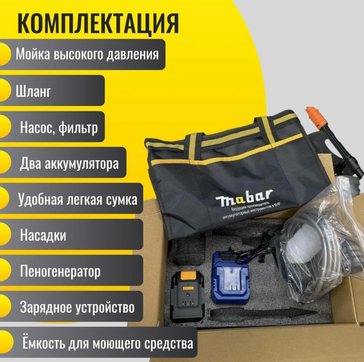 Мойка высокого давления аккумуляторной батареей Mabar интересное: