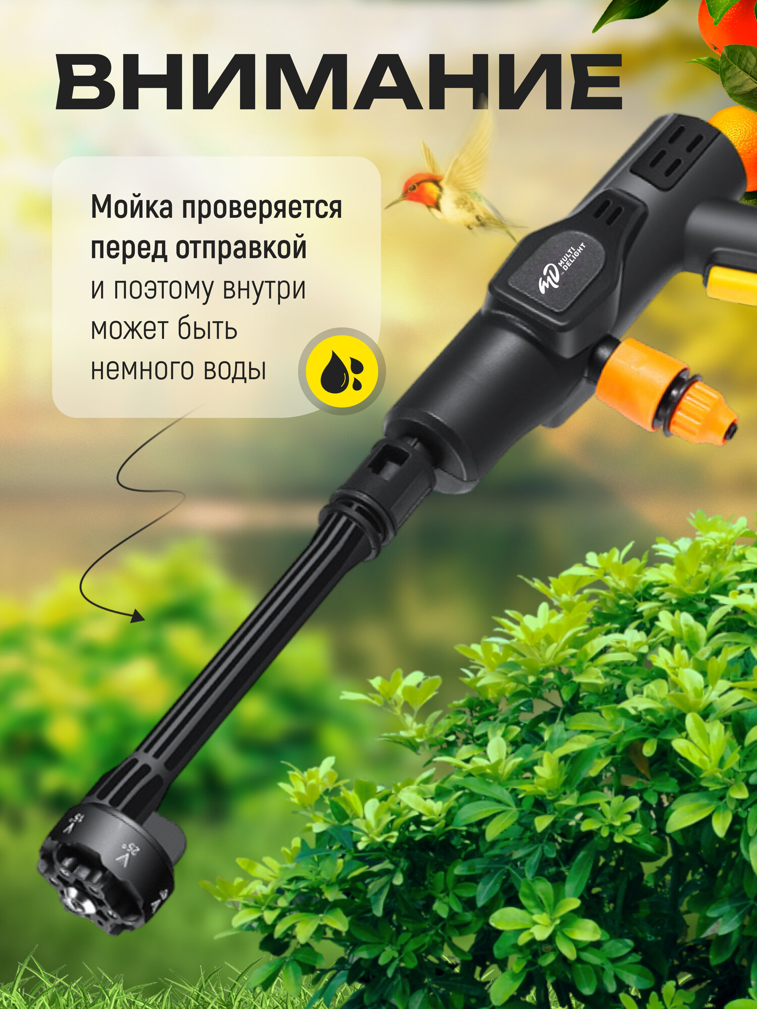 | Насадки | пеногенератор / поворотная насадка |