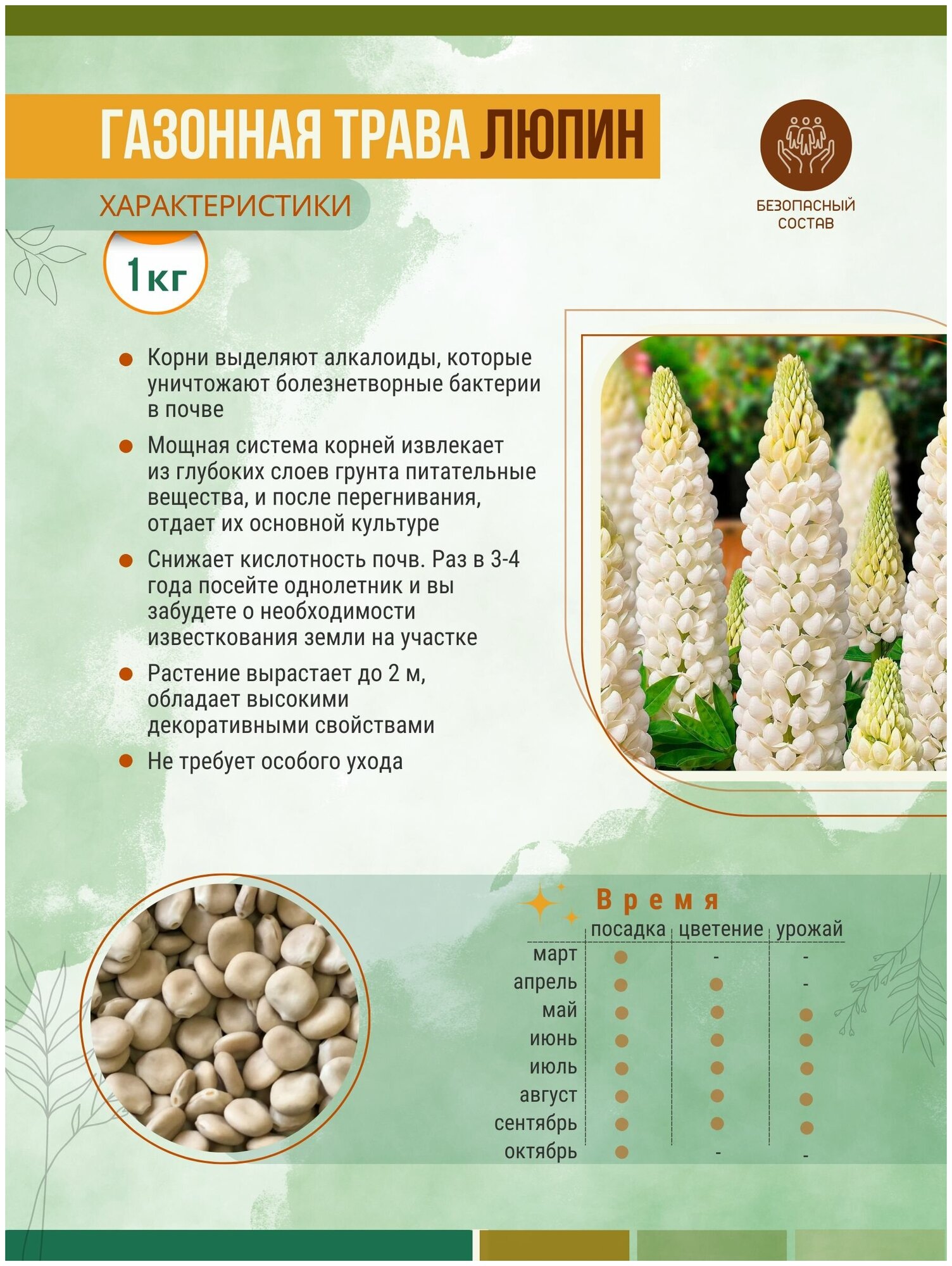 | Состав смеси | Люпин белый-100% |
