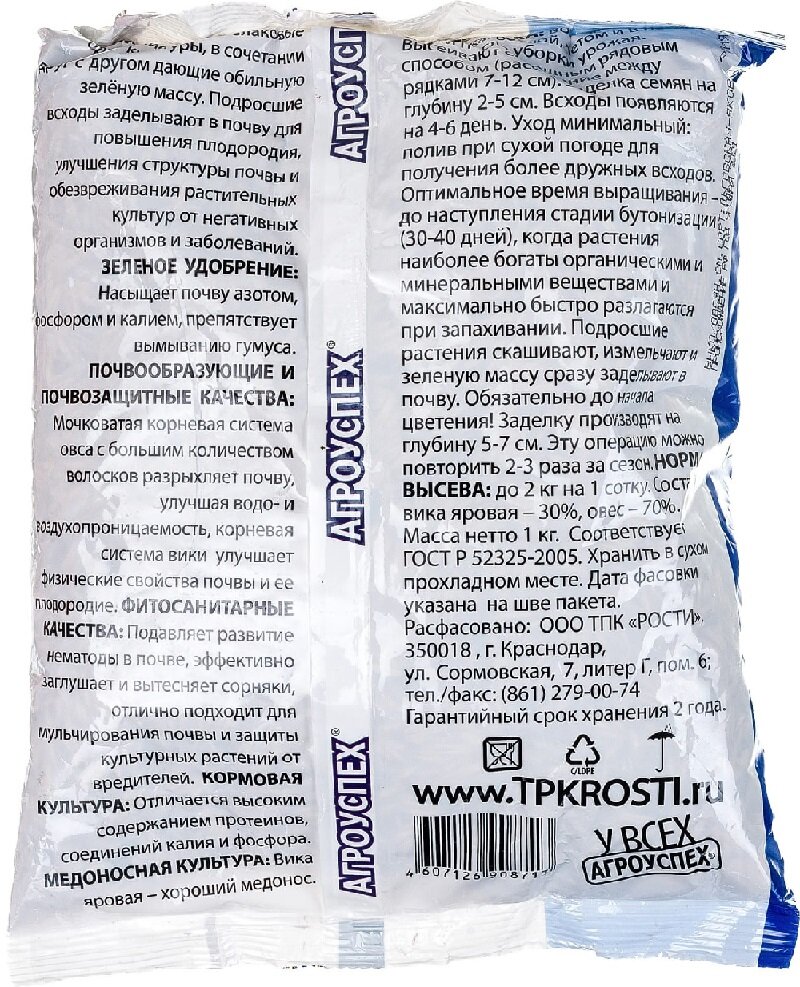 Сидераты семена агроуспех Вико- овсяная смесь 1 кг