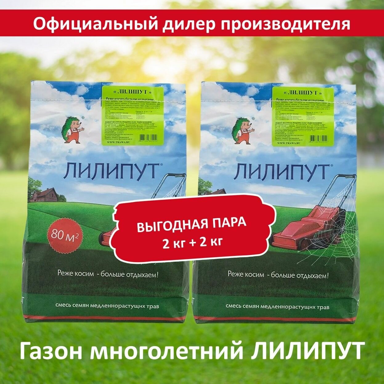 Семена газона Лилипут (медленнорастущий ), 2кг х 2 шт (4 кг) интересное: