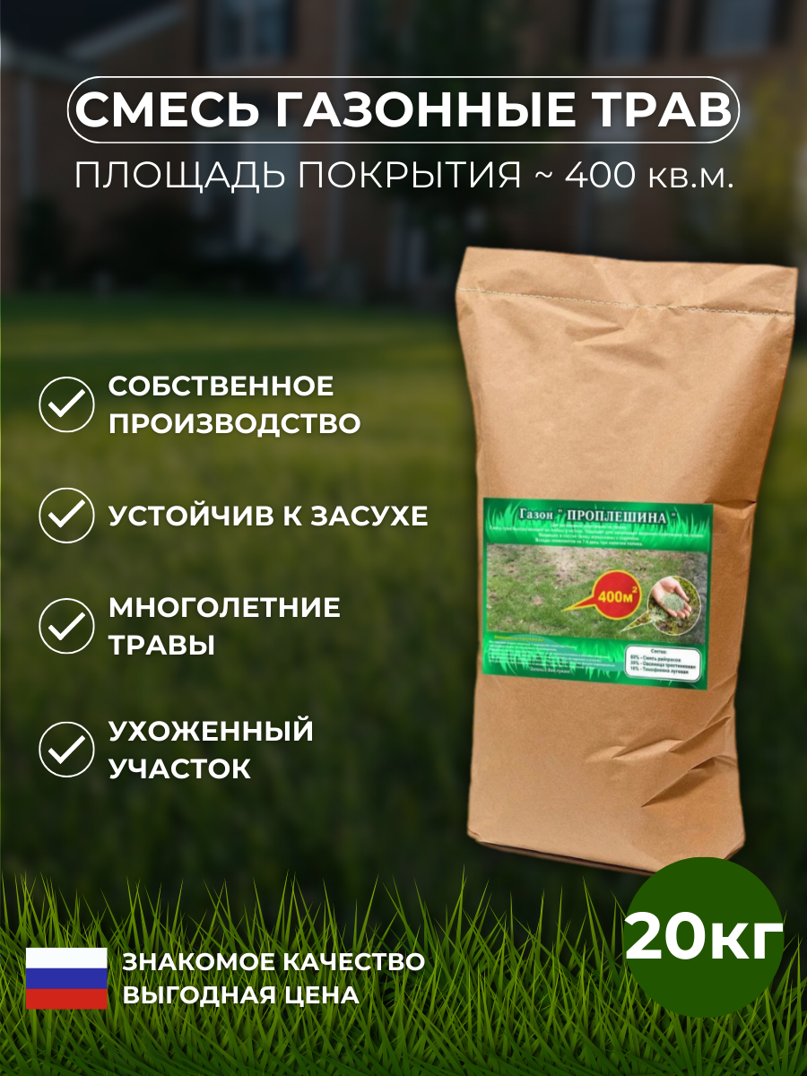 Газонная трава семена "Проплешина", 20 кг, Зеленый Метр интересное: