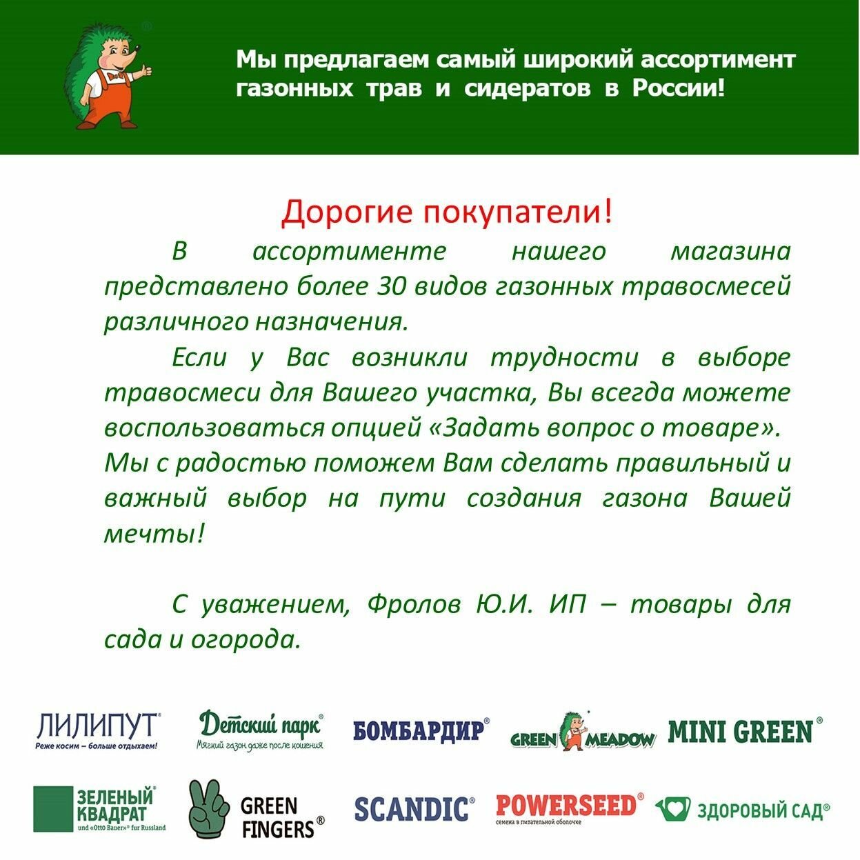 Ниже Вы можете прочитать отзывы на Семена газона озеленитель Зеленый ковер, 18 кг, ознакомится с подробными характеристиками, посмотреть интересные обзоры и фотографии на Семена газона озеленитель Зеленый ковер, 18 кг.