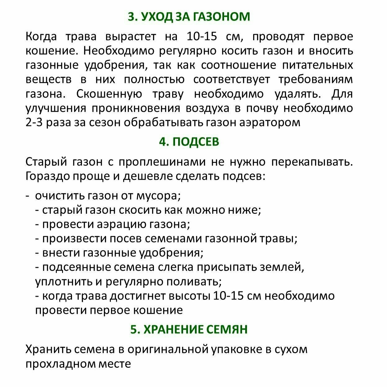 | Назначение газона | декоративный / спортивный / универсальный |