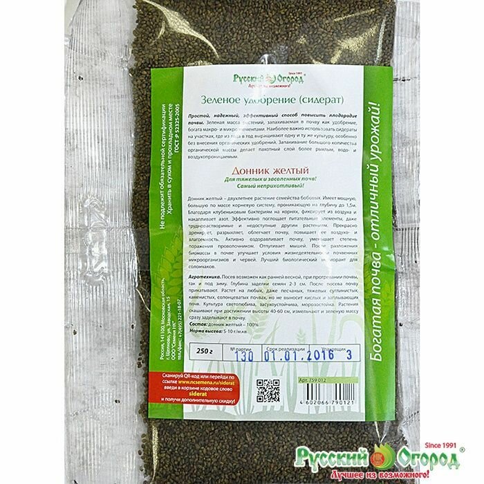 Ниже Вы можете прочитать отзывы на Семена сидерат Донник желтый 250 г, ознакомится с подробными характеристиками, посмотреть интересные обзоры и фотографии на Семена сидерат Донник желтый 250 г.