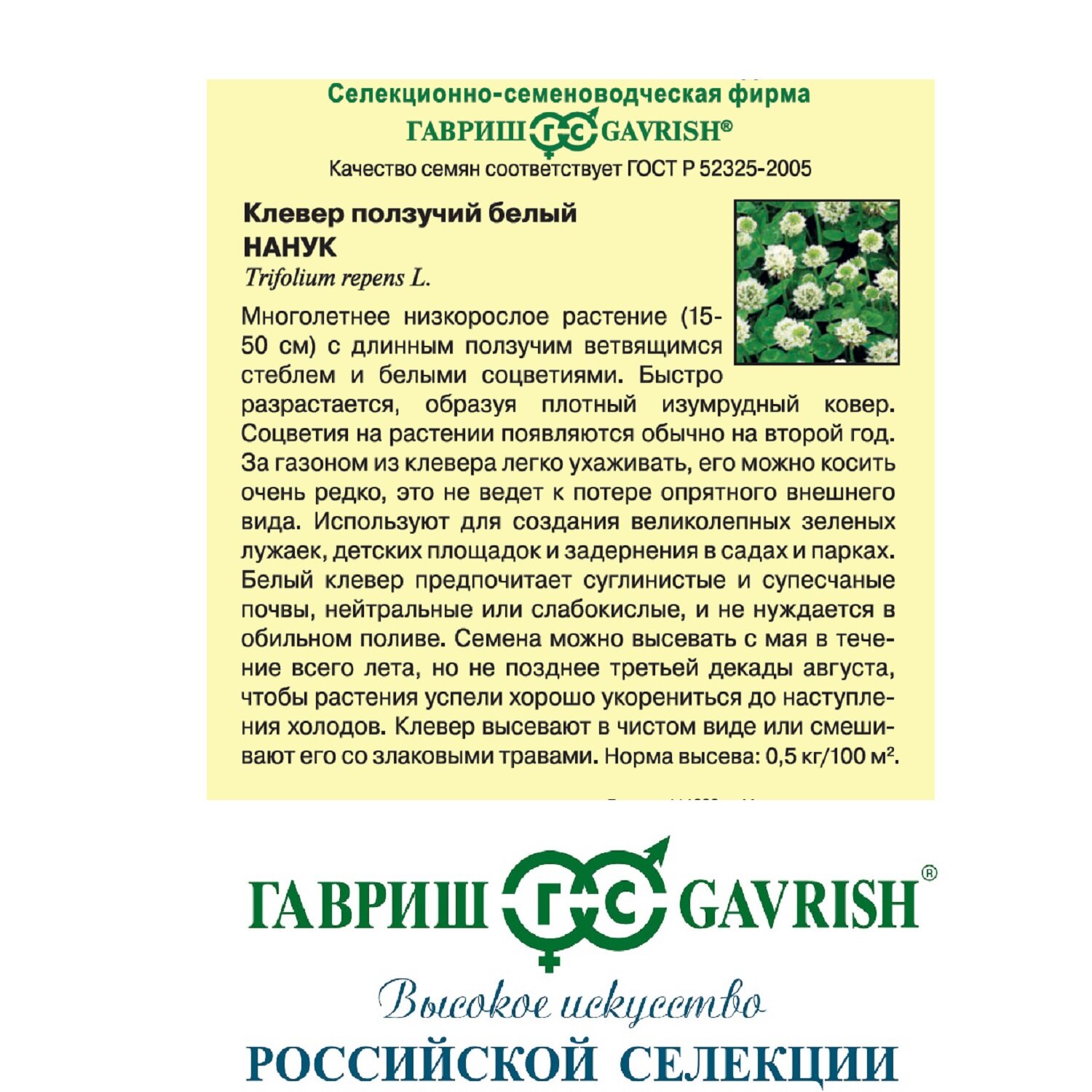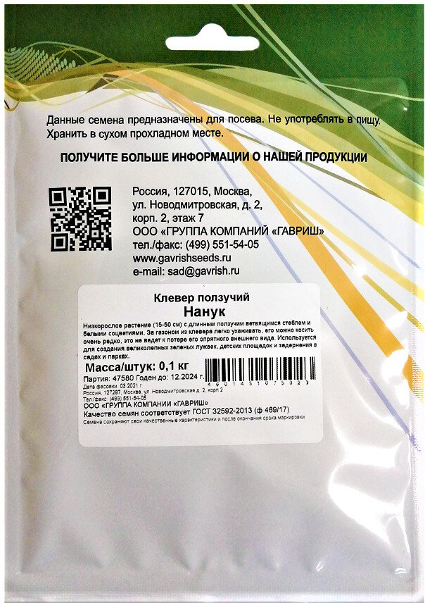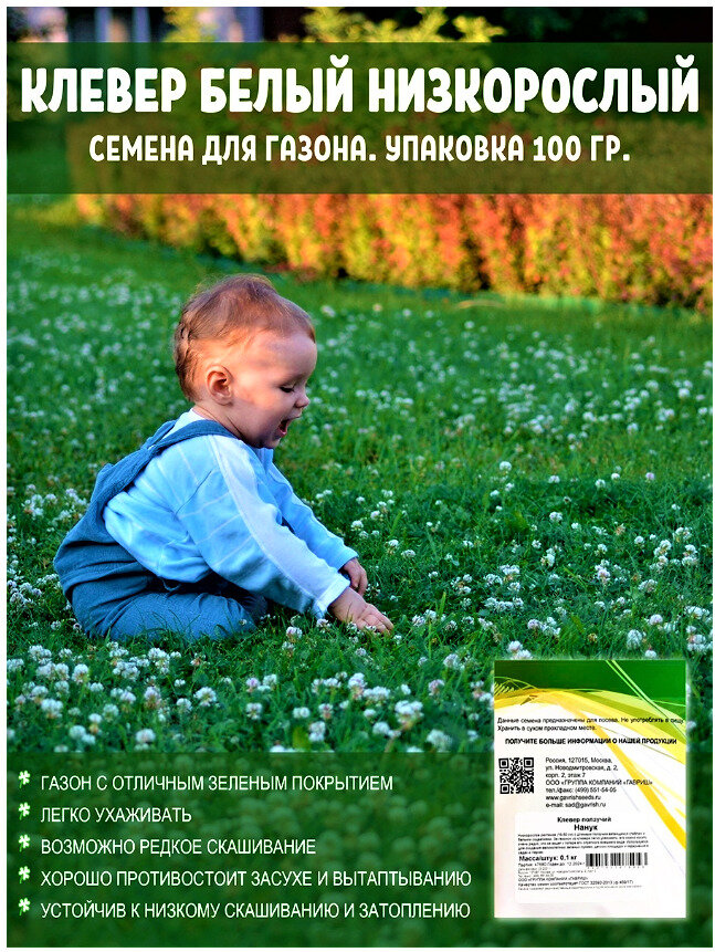 Семена Клевер ползучий белый Нанук, 0,1кг, Гавриш интересное: