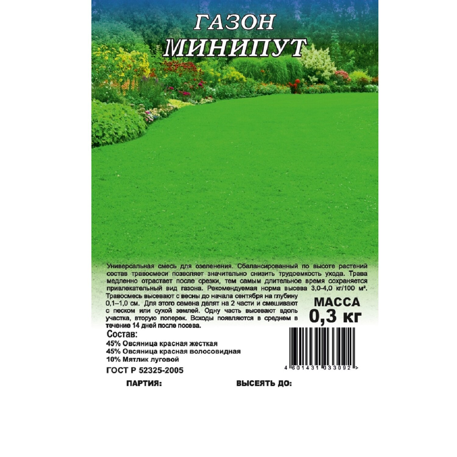 | Норма высева | 30-40 г/м² |