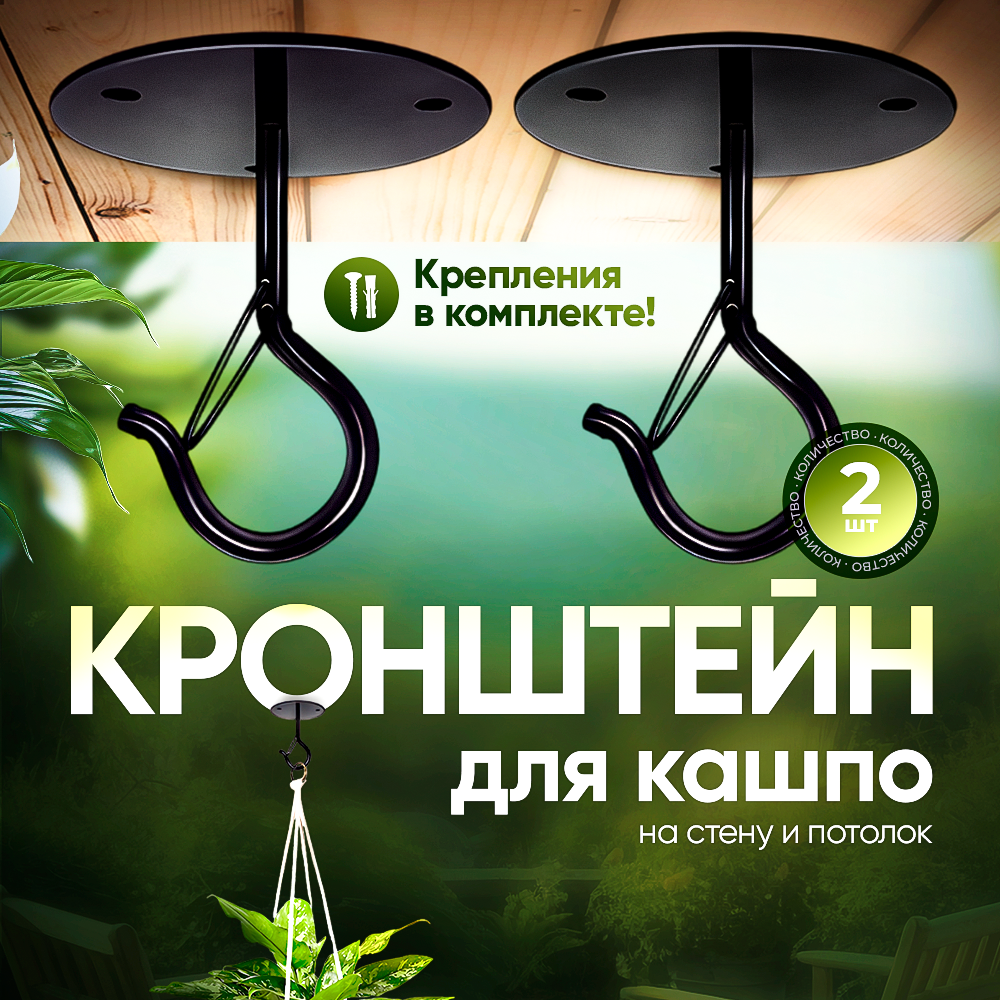 Кронштейн с карабином для кашпо и фонаря, металлический, 2 шт, черный интересное: