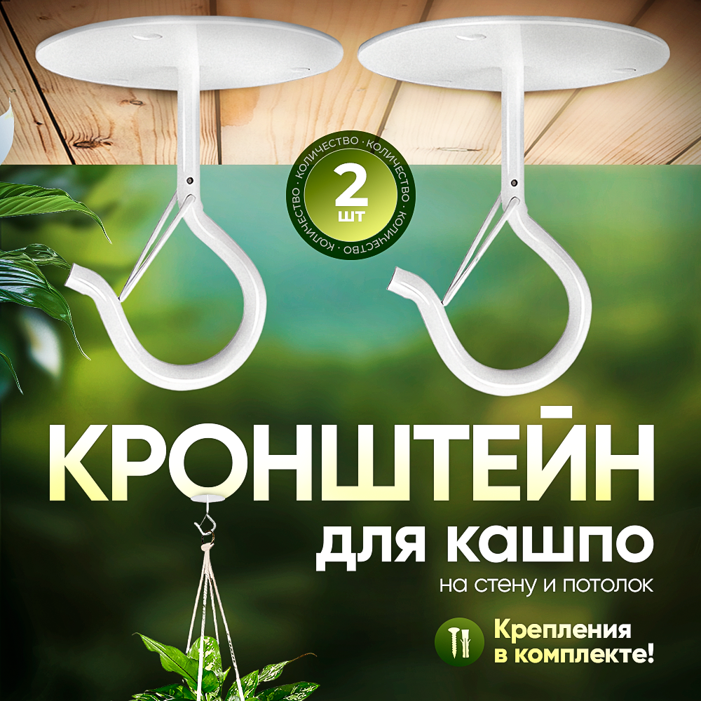 Кронштейн с карабином для кашпо и фонаря, металлический, 2 штуки, белый интересное:
