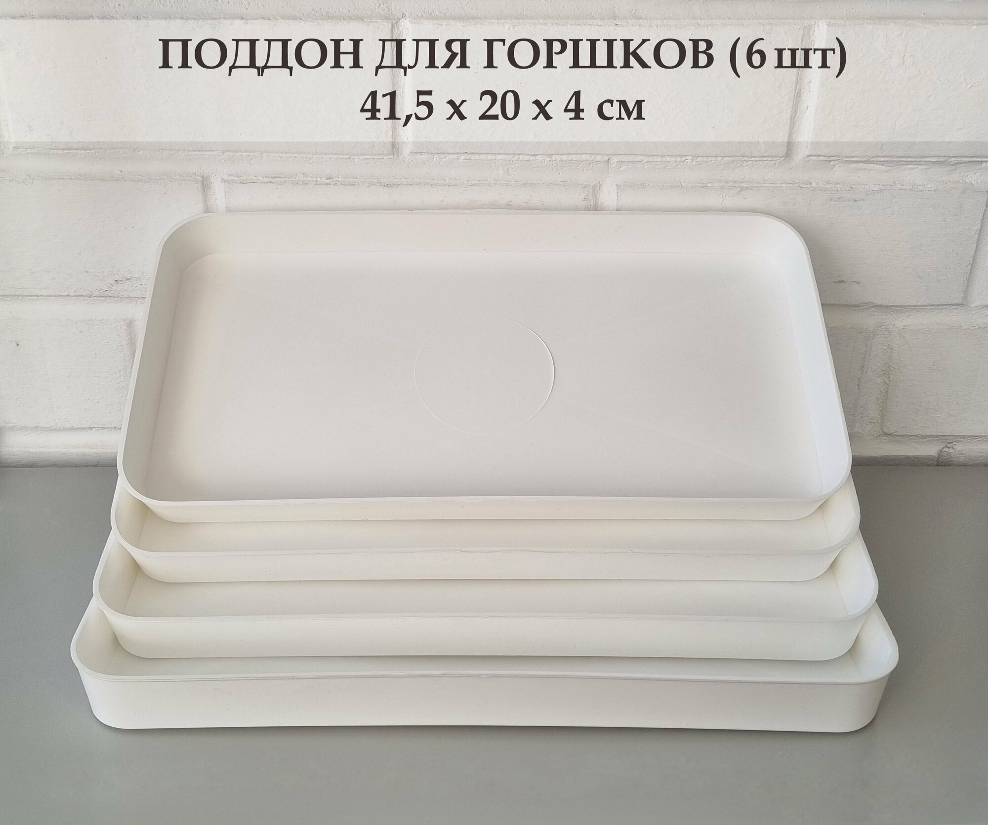 Купить Белые поддоны для горшков, 6 шт, 41,5*20*4 см / Ящик для выращивания рассады