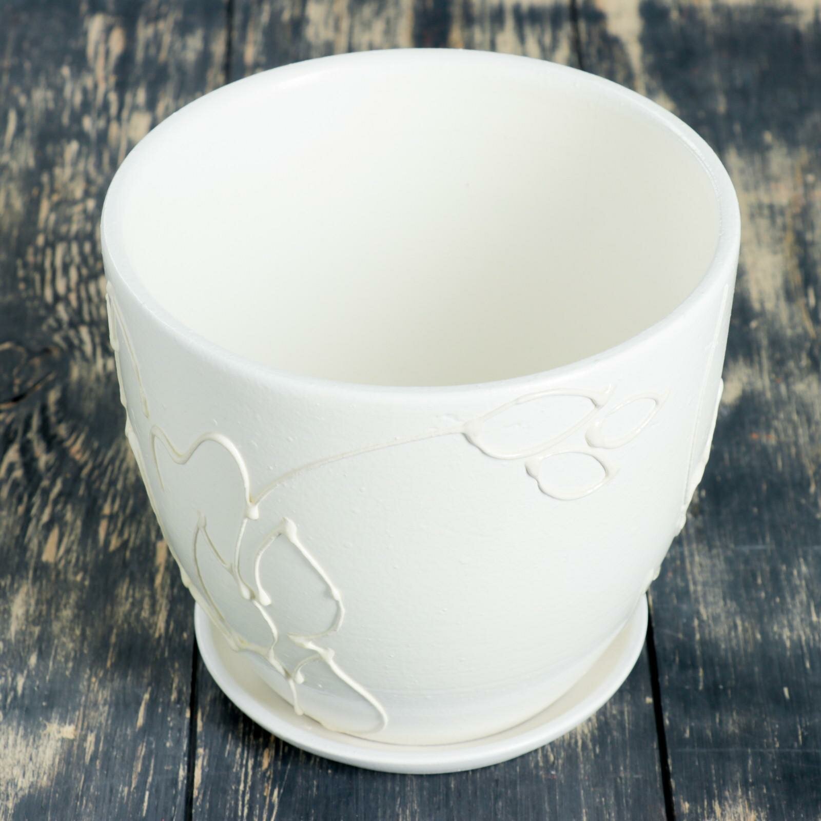 Горшок цветочный "Листья" с поддоном 5л, керамика, настольный декоративный горшок для цветов