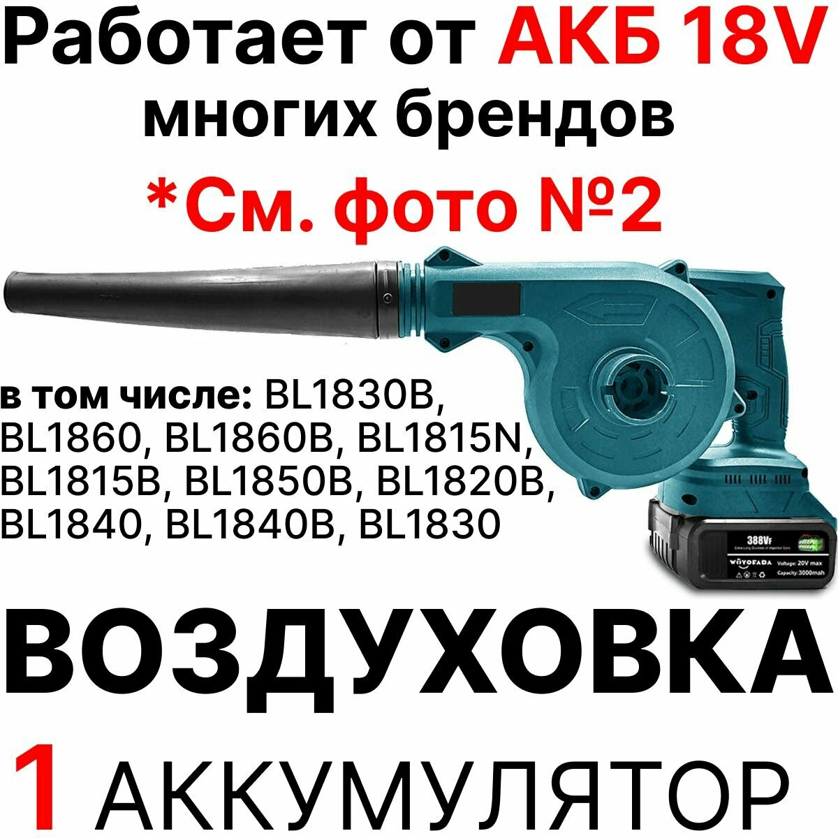 Воздуховка аккумуляторная, воздуходув, 1 аккумулятор 3 А*ч, совместима с АКБ 18V многих брендов интересное: